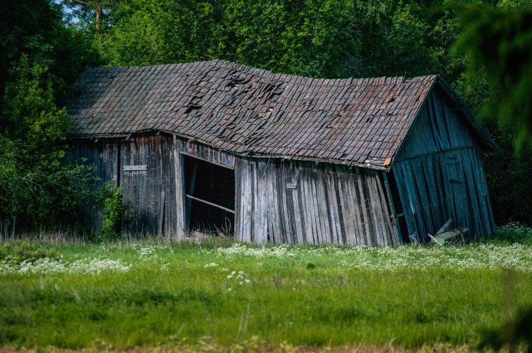 Tofsvipan varnar på ängen där den böljande ladan står. I dikena blommar det för fullt.