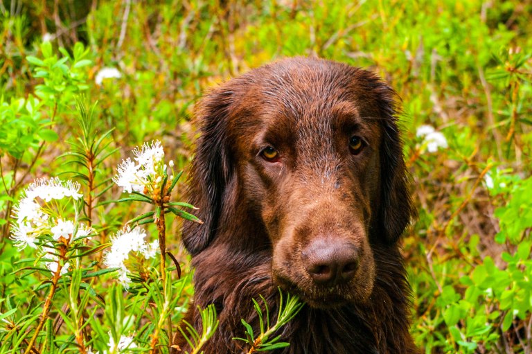 The companion enjoys the labrador tea marshland, which is now in bloom.