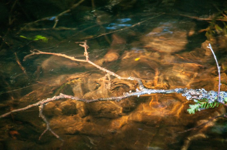 The morning cold carries with it steam fog but soon the sunbeams reach the bottom of the brook and colour the grass by the road.