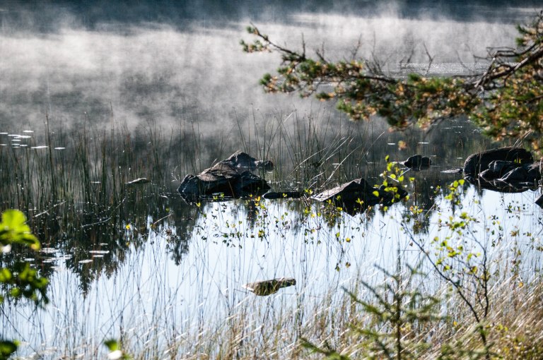 There is much to be found -shells of crayfish under the water surface, a pinewood on the shoreline where someone has had a party. And then some who are hurrying away. The autumn is here.