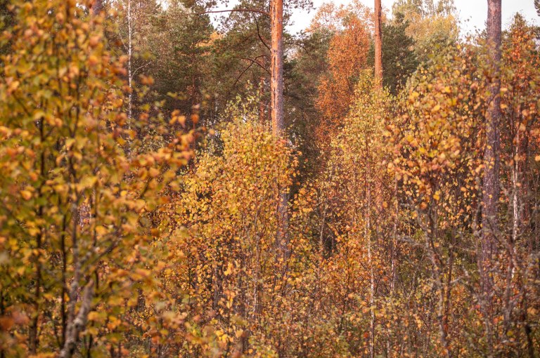 En del dagar brinner hösthimlen, andra visar en klarblå sky.