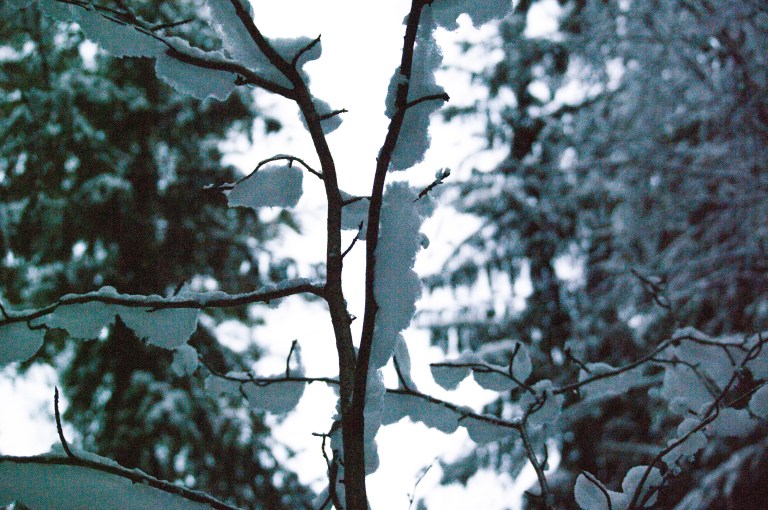 Nästa dag är snöfallet tillbaka. Natten därefter har uttern vandrat från ett öppet vatten till ett annat. Tjäderns spillningshög avslöjar dess bädd och vägen är knappt farbar….