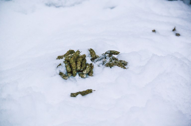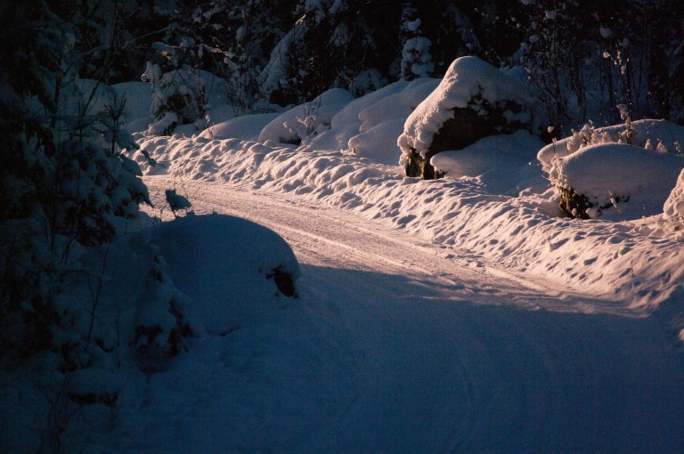 Nästa dag är snöfallet tillbaka. Natten därefter har uttern vandrat från ett öppet vatten till ett annat. Tjäderns spillningshög avslöjar dess bädd och vägen är knappt farbar….
