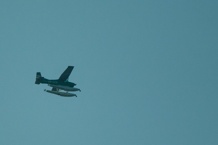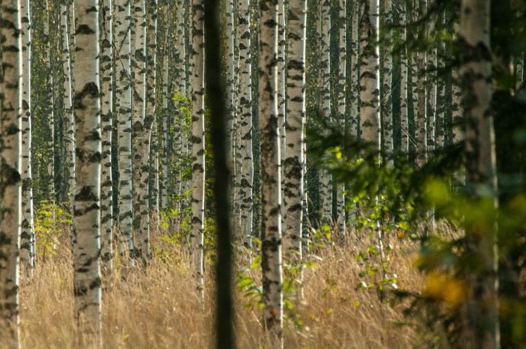 A tour in the woods settles it: Autumn is coming, at first seen only in the shape of one single yellow leaf in the water, but when looking upwards the truth is revealed.