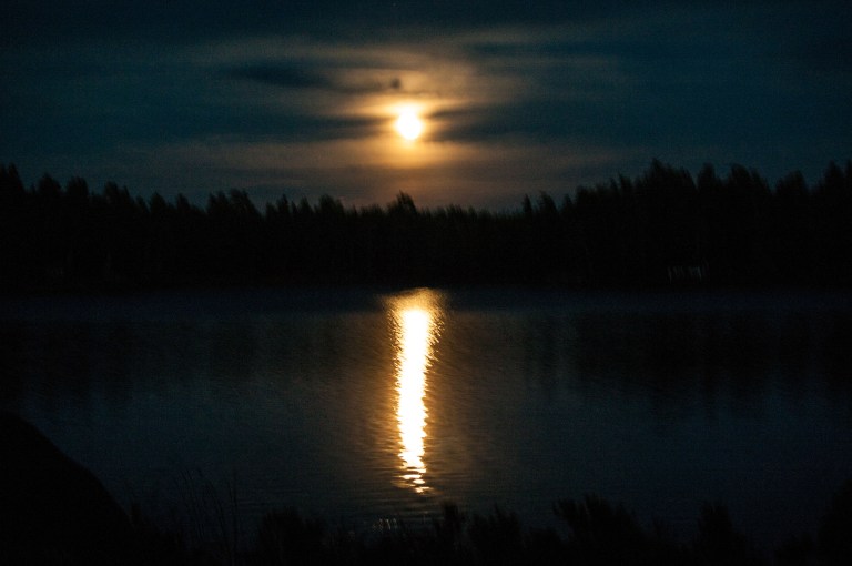 There is still blossoming even though the fern is starting to lose its colour. At night the full moon glitters in the water.