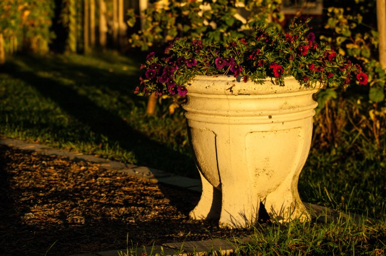 The dawdling light of morning is captivating – the reed never shines as much as when reached by the first rays of sunlight. The urn as well as the bushes are painted in gold. Mother swan peacefully takes care of her baby outside the hermit’s house, as long as she doesn’t notice any movement.