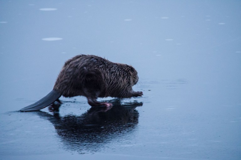 One morning something brown is seen outside the hermit’s house. There is now water on the clear, black ice. Someone is slipping about on the ice, hurrying away from attention. The brown companion wants to make acquaintance with the brown little fellow: Hello friend!