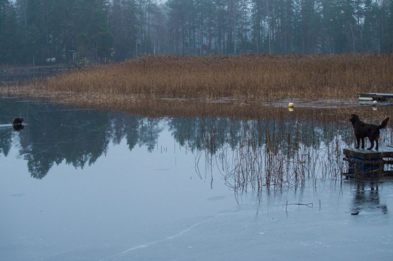 Isen har lagt sej. Nu går den inte upp mer men dagarna skiftar mellan regn, dimma och snö. Naturen är lite förvirrad.