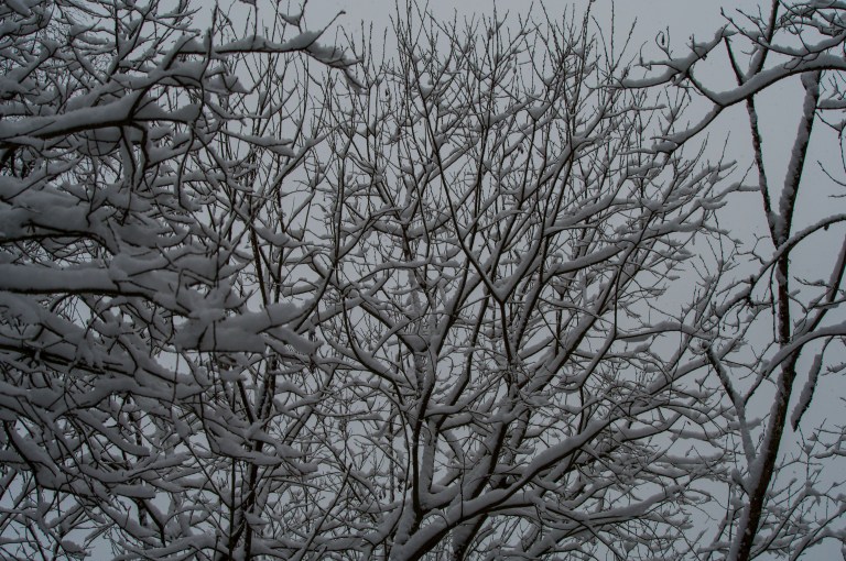 Anyway, the reed is wearing hats, snow is pouring down, and there are in fact white leaves, right? It gets harder to see through the trees.