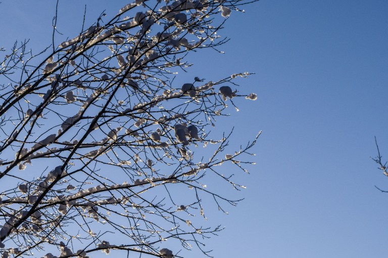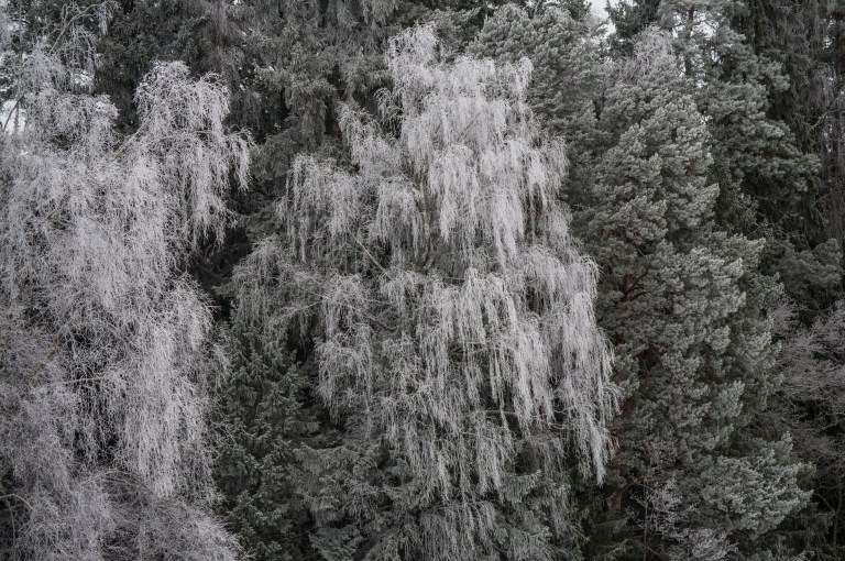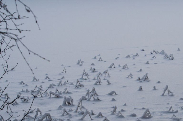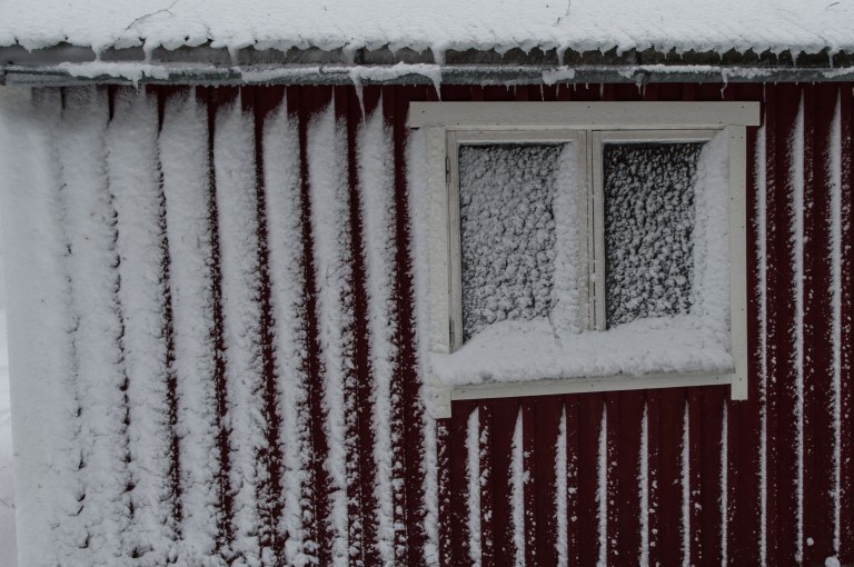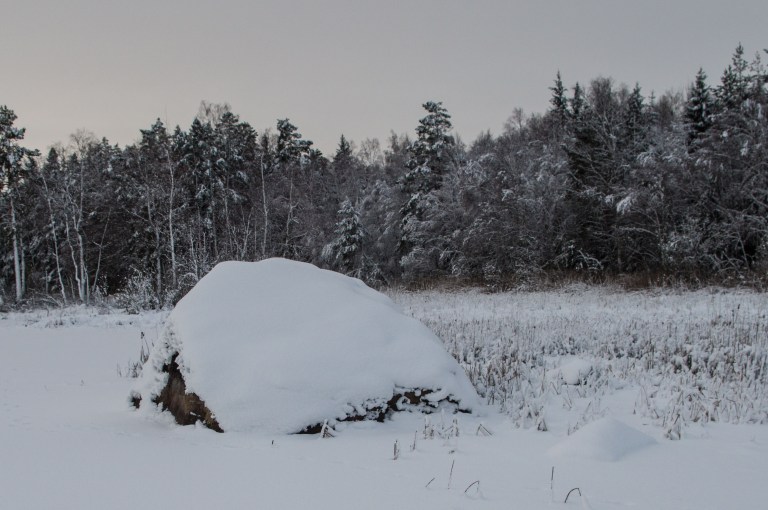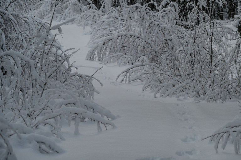 Hoarfrost and snowfall make out the January landscape. There is a lot of snow and soon it’s impossible to travel by the road. That doesn’t stop the brown one though, taking a break during the arduous work of trying to move forward…