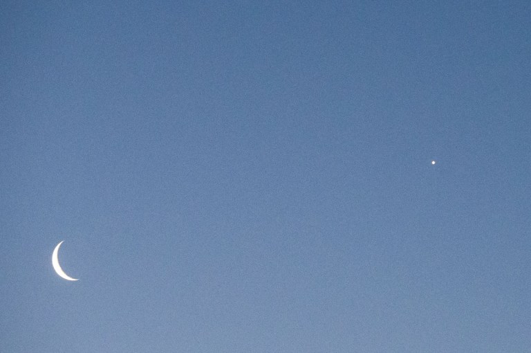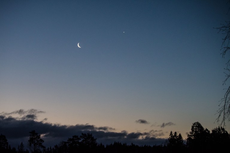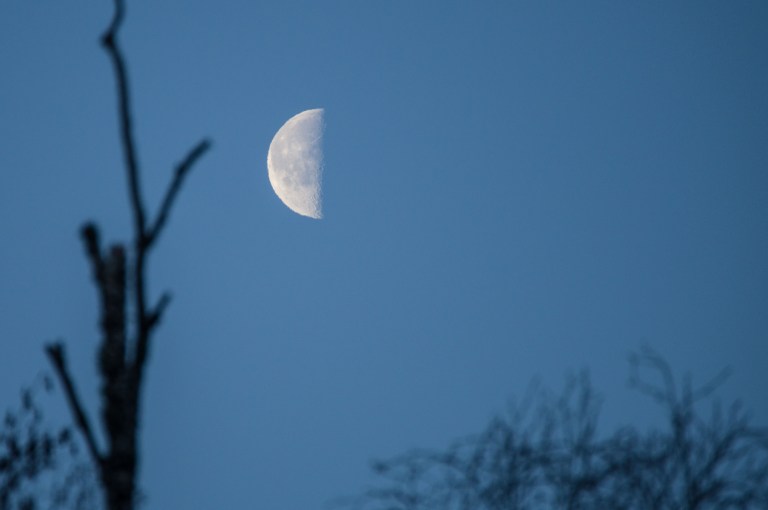 Månen är framme både morgon och kväll. Är det dramatik man anar där i skyn? Är det åtrå eller glupskhet? En rovfågel kommer glidande och spejar långt däruppe.