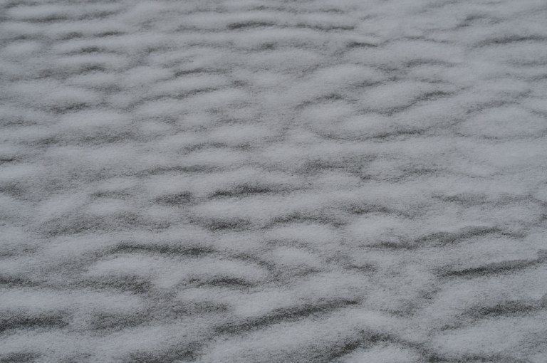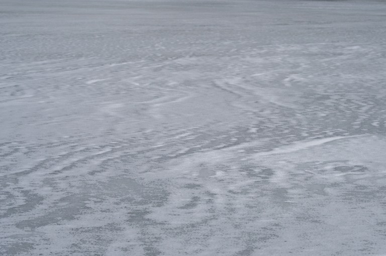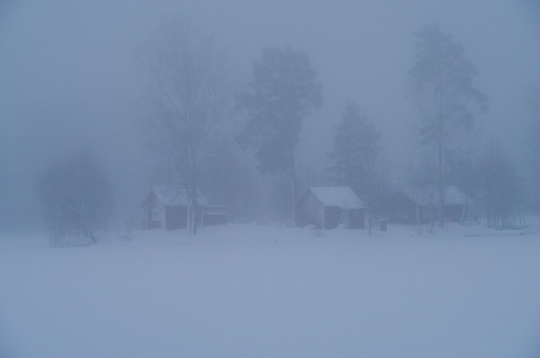 Den brune följeslagaren tittar fram ur det tjocka snötäcket, snövågorna döljer isen men så kommer dimman vältrande.