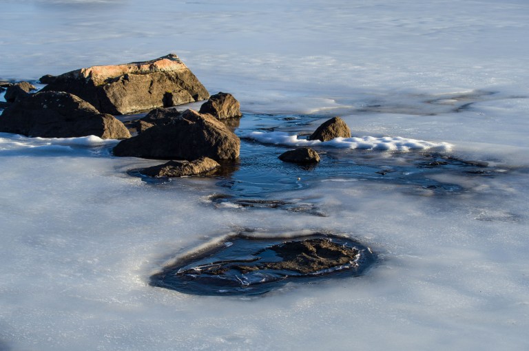 Ishinnan brister och stenarna kommer upp. Vattnet tittar fram. Vårsolen lyser….