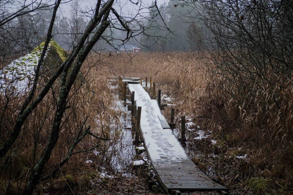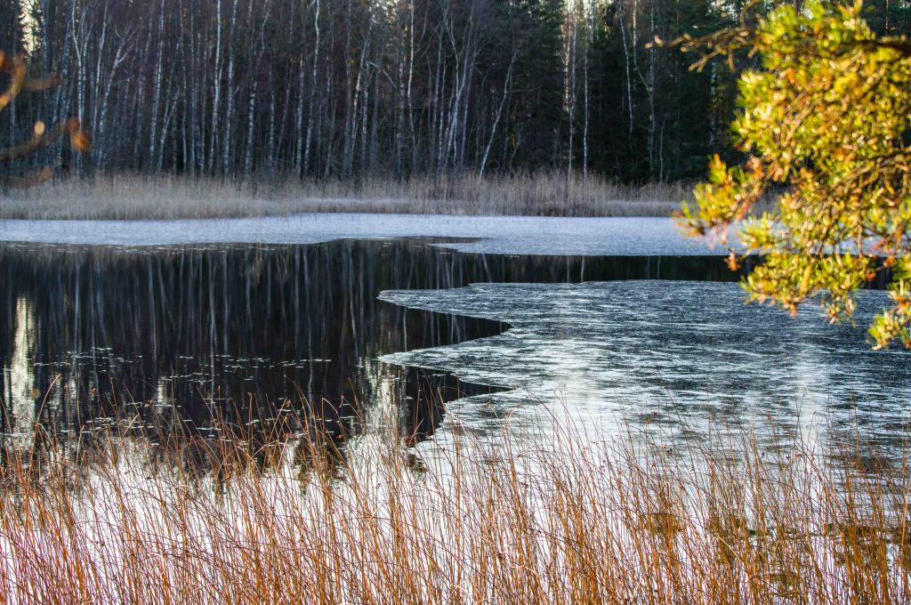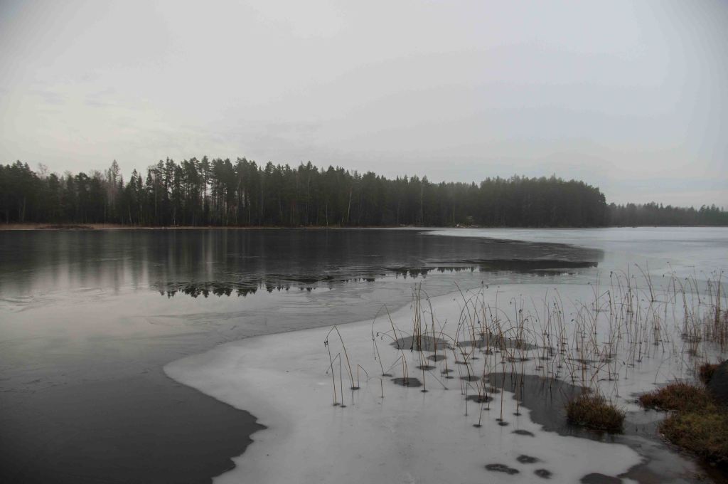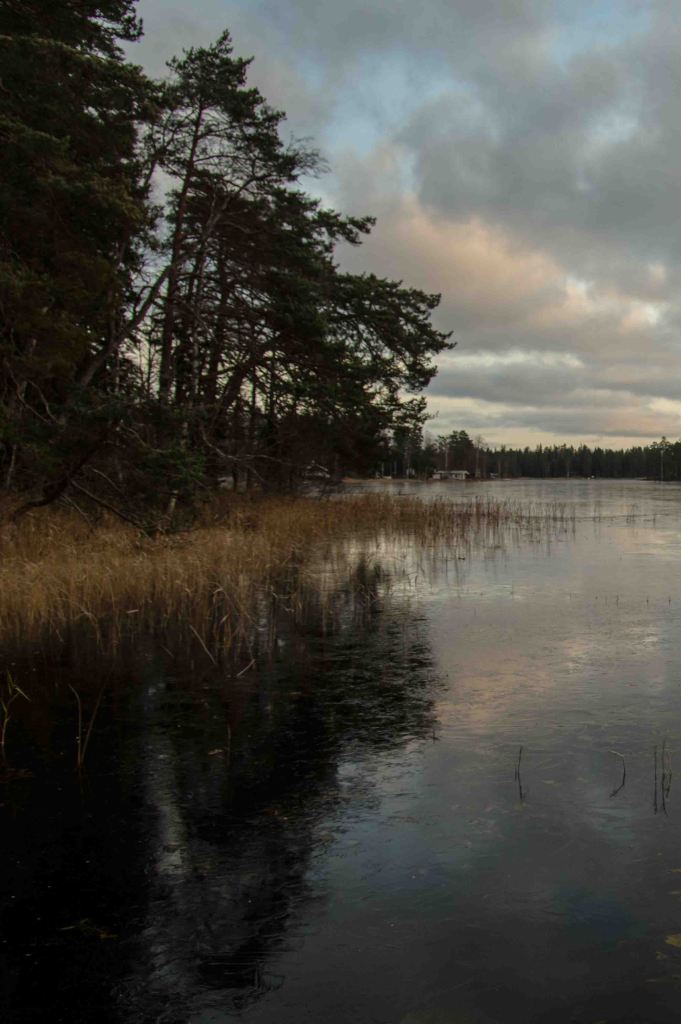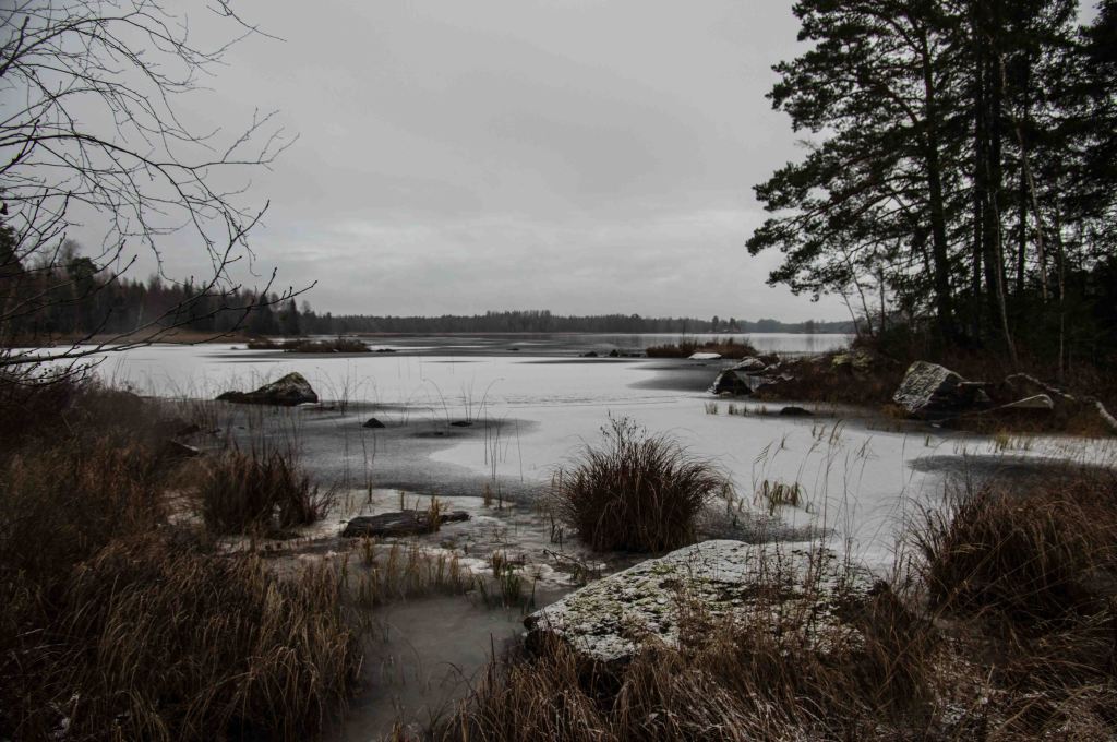Once in a while the sun comes out, but the grey and the clouds dominate. Some swans linger. The time of ice has come, crystals spread interrupted by milder days, ice channels open. The snow comes and goes – just like it should be during this ”pre-winter” month.