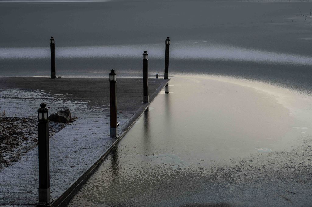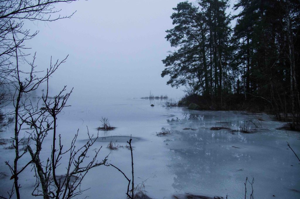 The wet snow marks the ice. Sure one can find views in december, but it is hard not to repeat oneself since all is grey and blue!