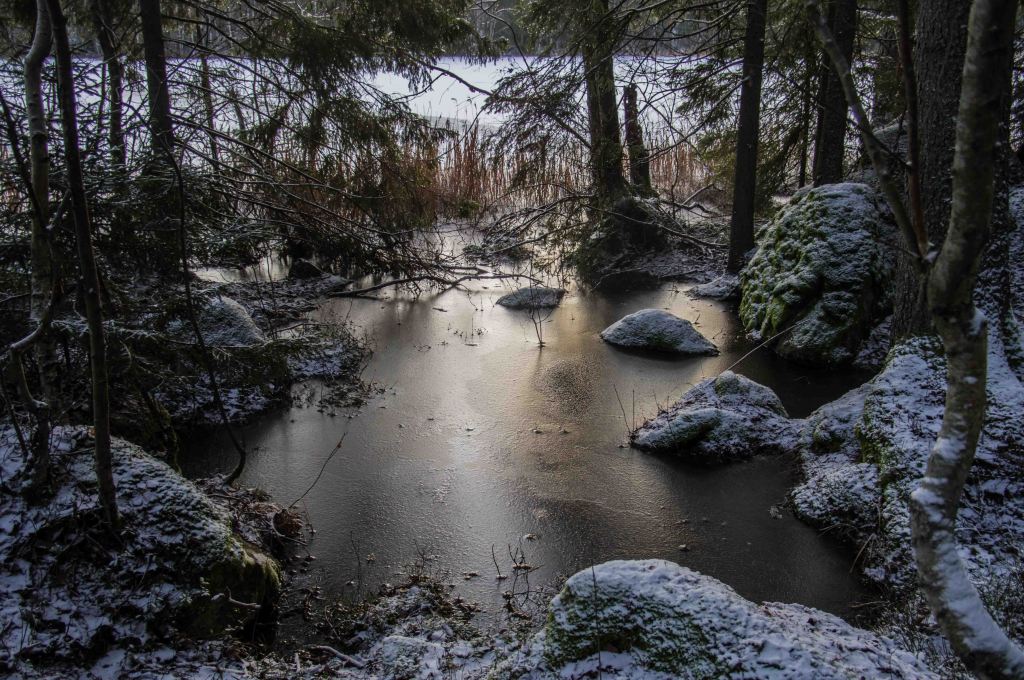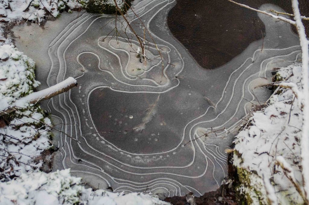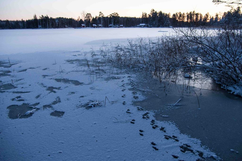 Blötsnön ger avtryck på isen. Visst kan man hitta vyer i december men det är lätt att upprepa sej när färgerna mest är grå och blå!