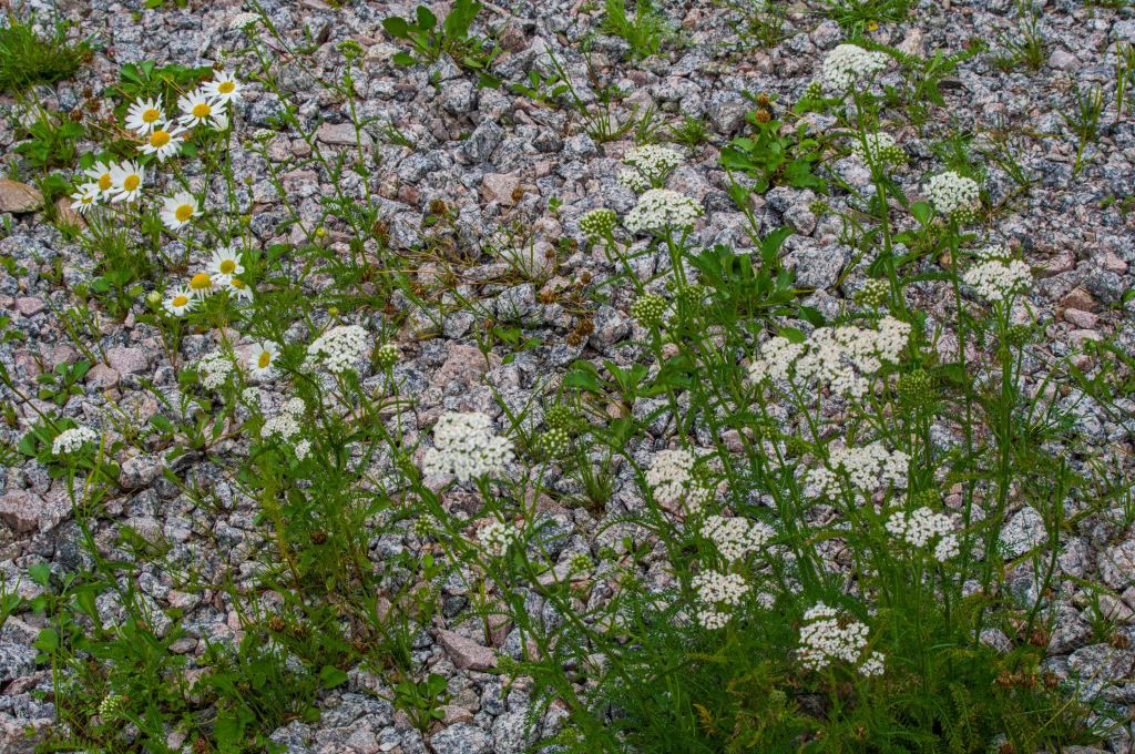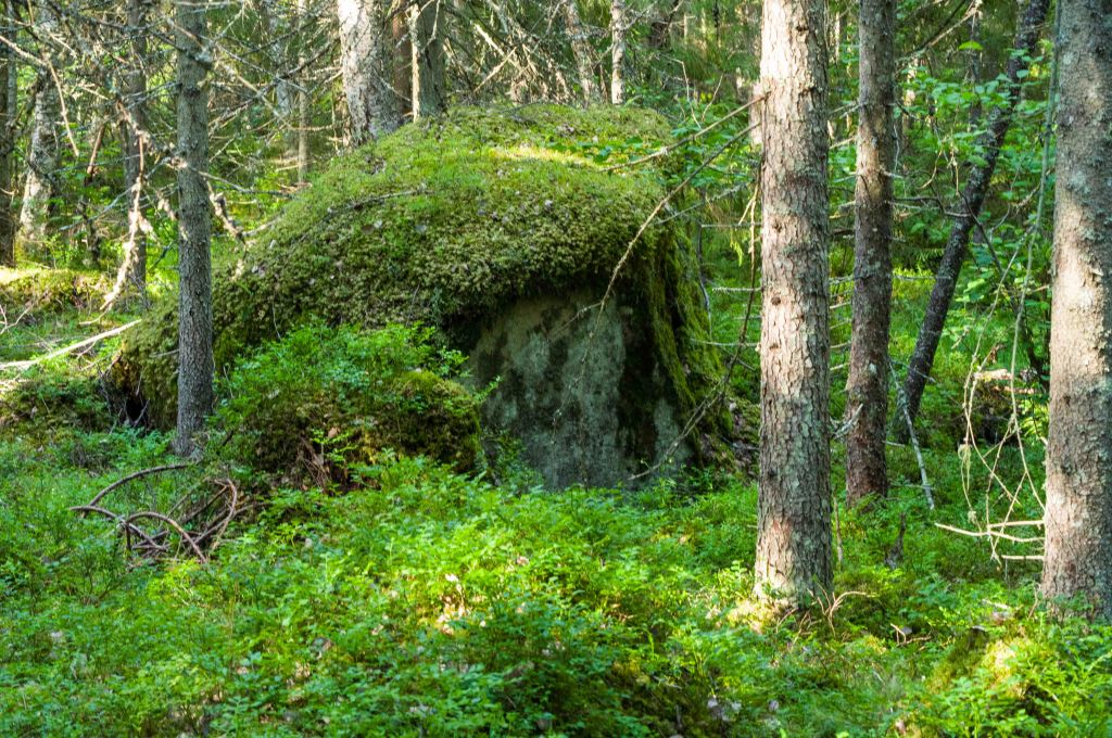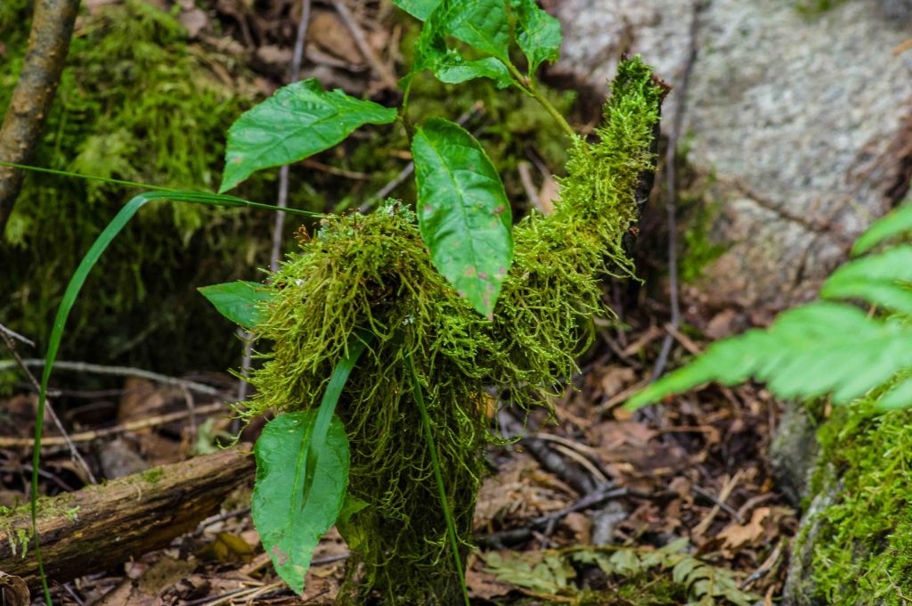 Även i den miljö som är karg blommar det till oanad omfattning. En bit därifrån breder björnmossa och ormbunkar ut sej.