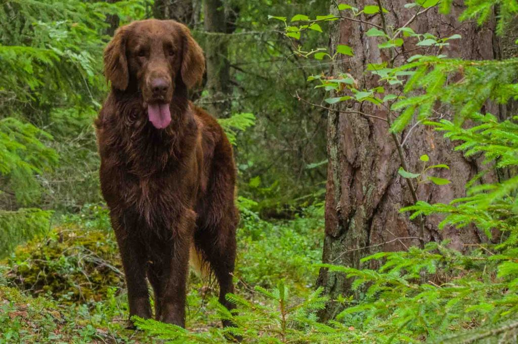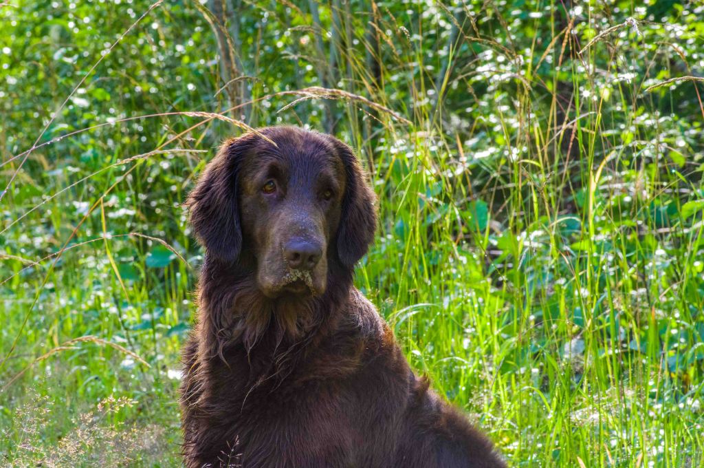 Det är en fager tid och dags att skörda överflödet. Sommarvägen är vacker och leder ut i skogens värld. Regndroppar hänger kvar efter juliregnet. Den brune följeslagaren tar kommandot ut i vattnet.