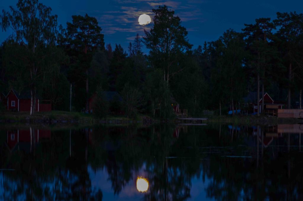 I augusti kommer skymningen tidigare och nu märks det att nätterna blir mörkare. På kvällen lyser fullmånen i skyn och i vattnet. Är det dags för den uppochnervända världen?