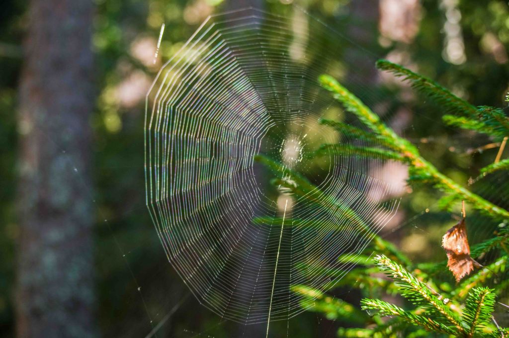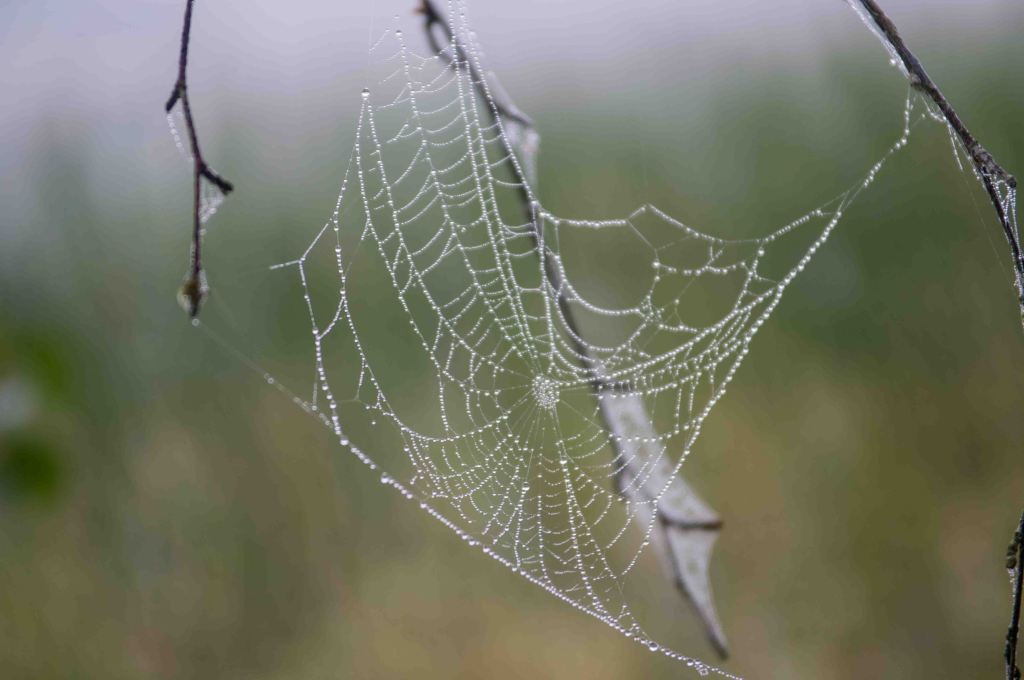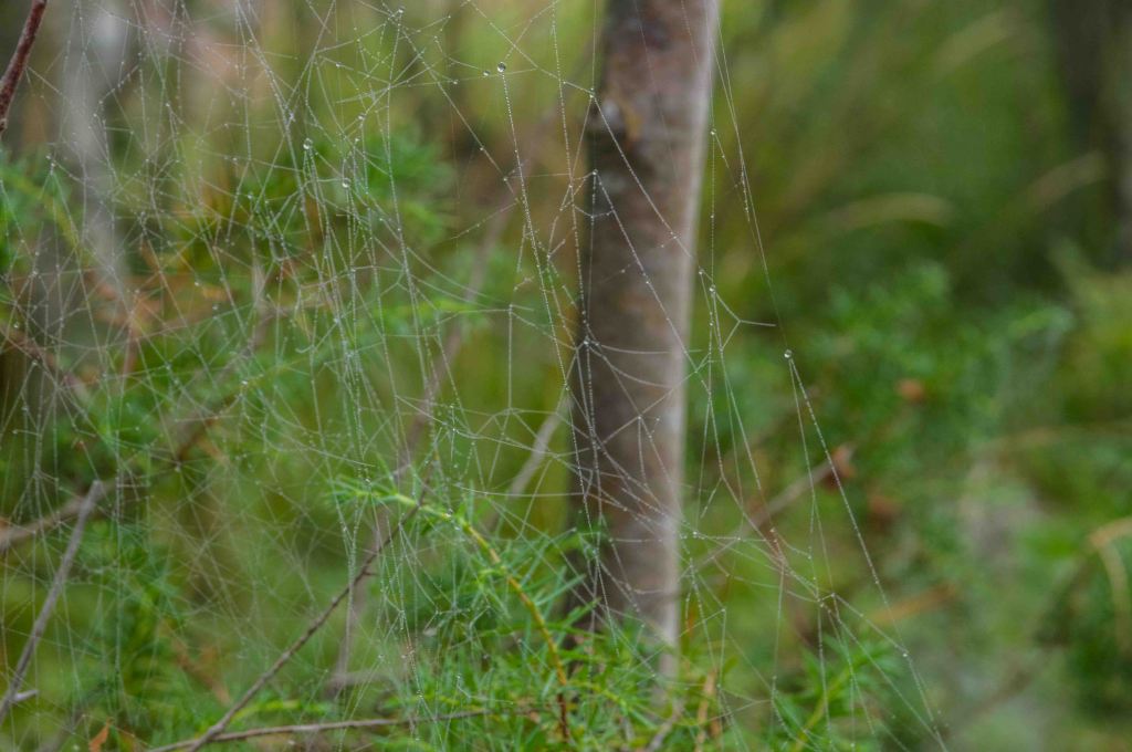 During the hike a new world appears. It is time for the hunters’ tools. Everywhere one gets stuck in wires and webs and occasionally one encounter the hunter itself. Surely a web made of pearls is extra valuable?