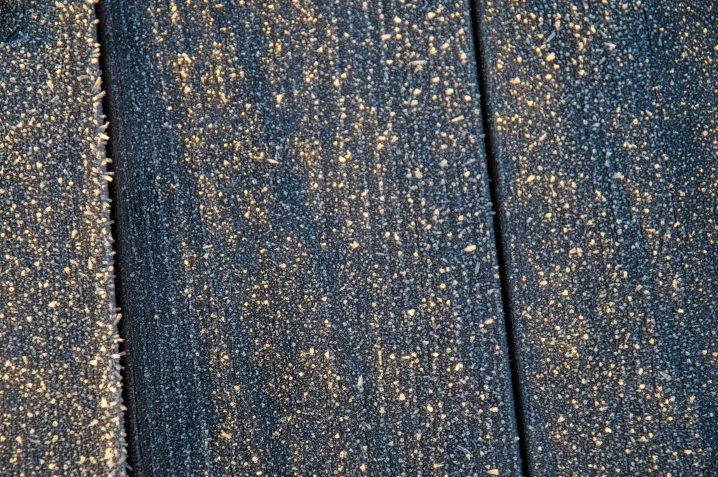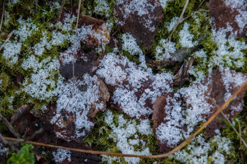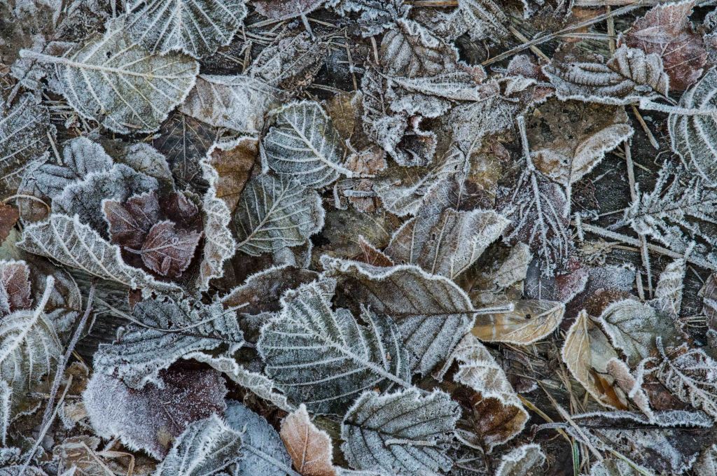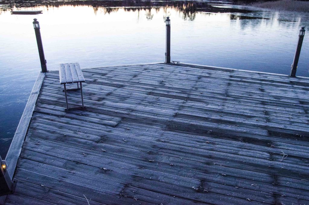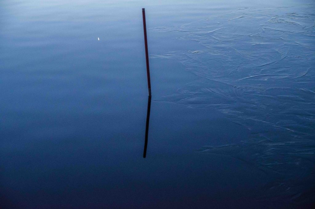 Temperaturen sjunker sakta och det blir dags för frost. Iskristaller växer ut ur viken. Än bildas inte fast is men processen förebådas. Det bildas nya färger och mönster.