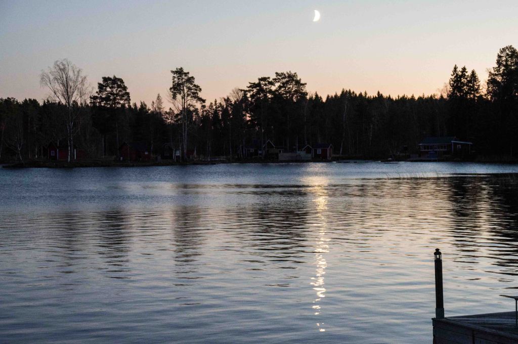 Solens efterlängtade strålar bryter igenom då och då. Den stora penseln med guldfärg skapar trevnad och nog verkar det som om omgivningen genast tar åt sej av ljuset.
