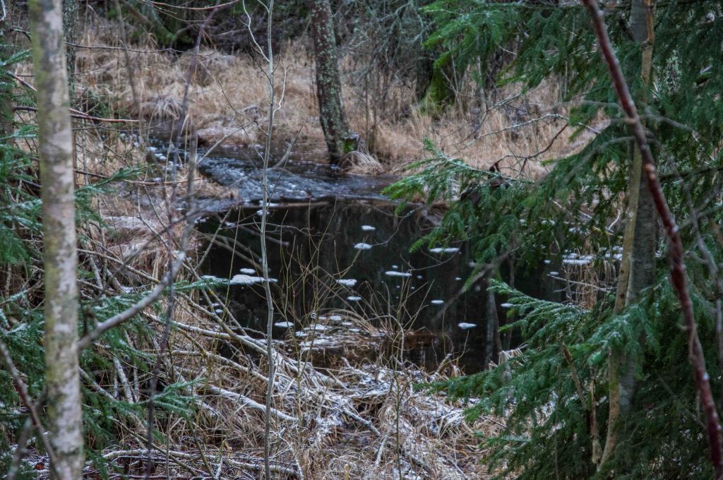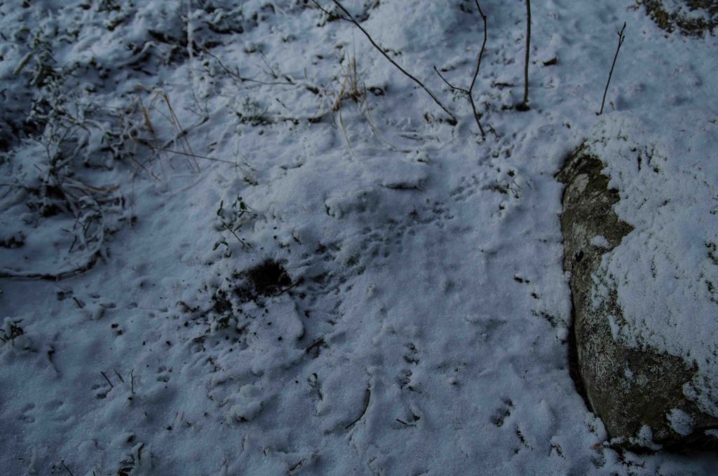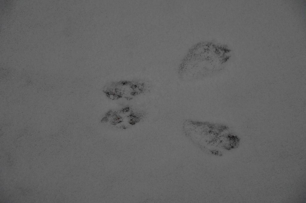 Vattnet får kraft efter snögloppandet och skapar monument och former. Morgonturen avslöjar också vilka kalas och vandringar som tilldragit sej sen sist.