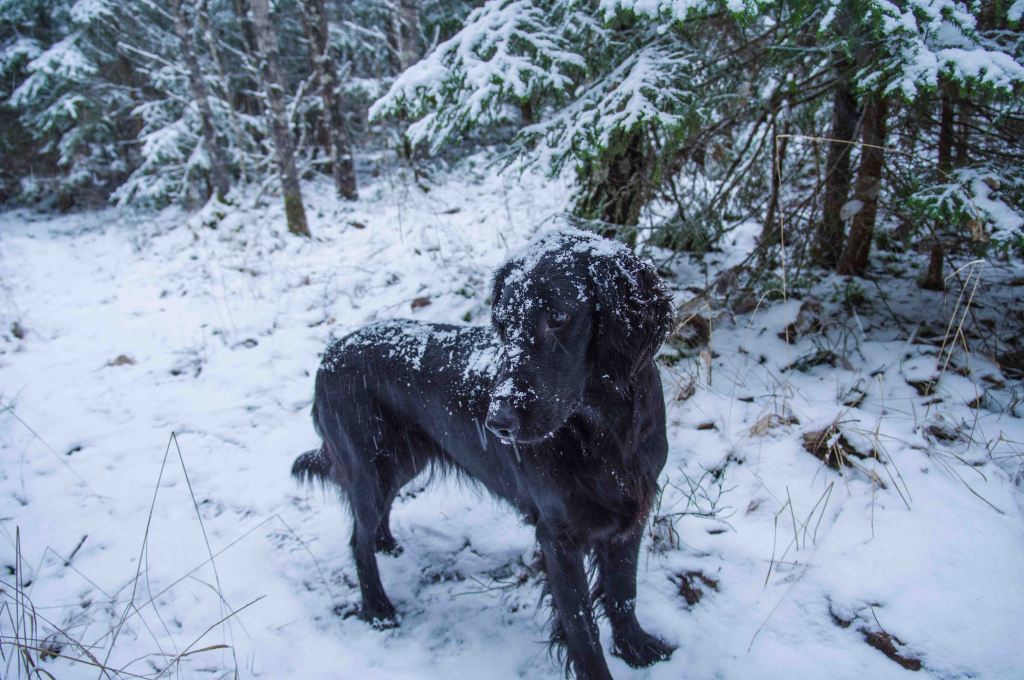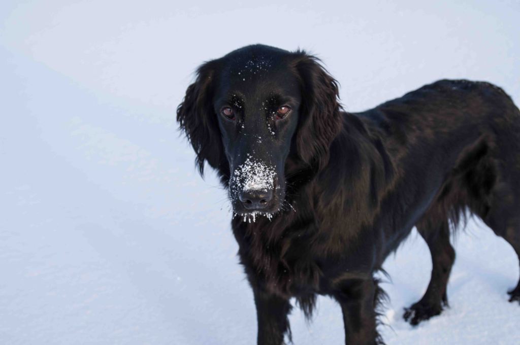 Now the cold is here for real, and the last swans head south. The snow rock has found its cavity, the cracks in the ice must mean powerful growth. The companion and Miss Flake enjoy frosty noses. Finally winter!