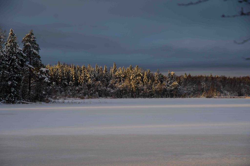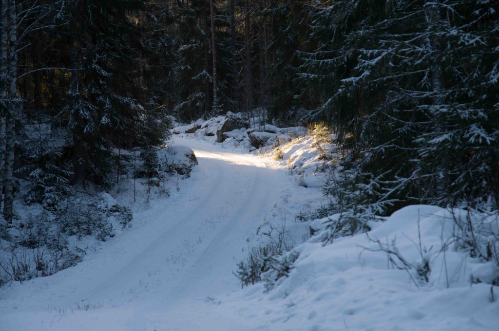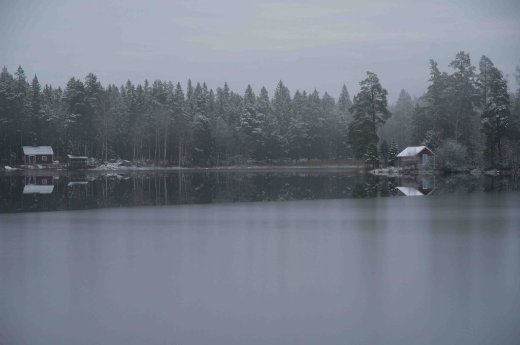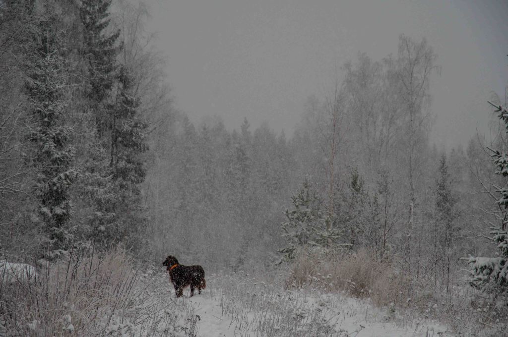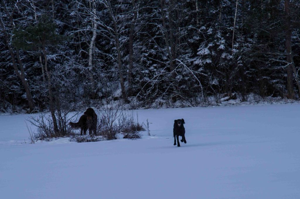 Nu är kylan här på riktigt och dom sista sångsvanarna drar söderut. Snöstenen har hittat sin fördjupning i tillvaron, sprickorna i isen tyder på kraftig tillväxt. Följeslagaren och fröken Flinga trivs med frost på nos och bringa. Äntligen vinter!