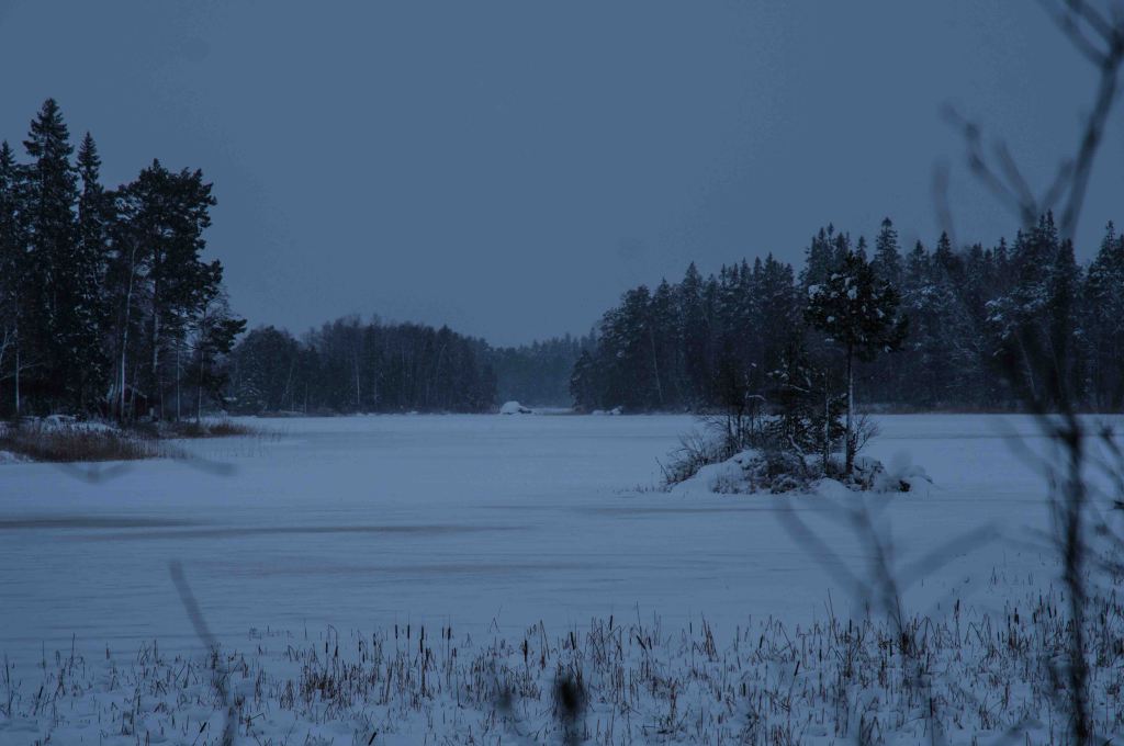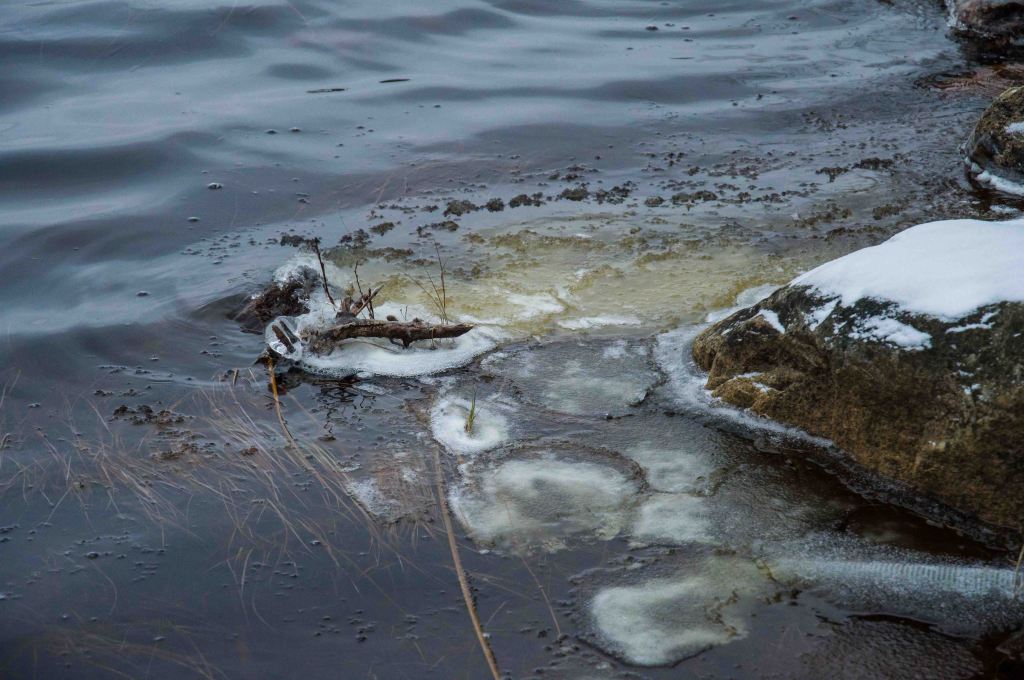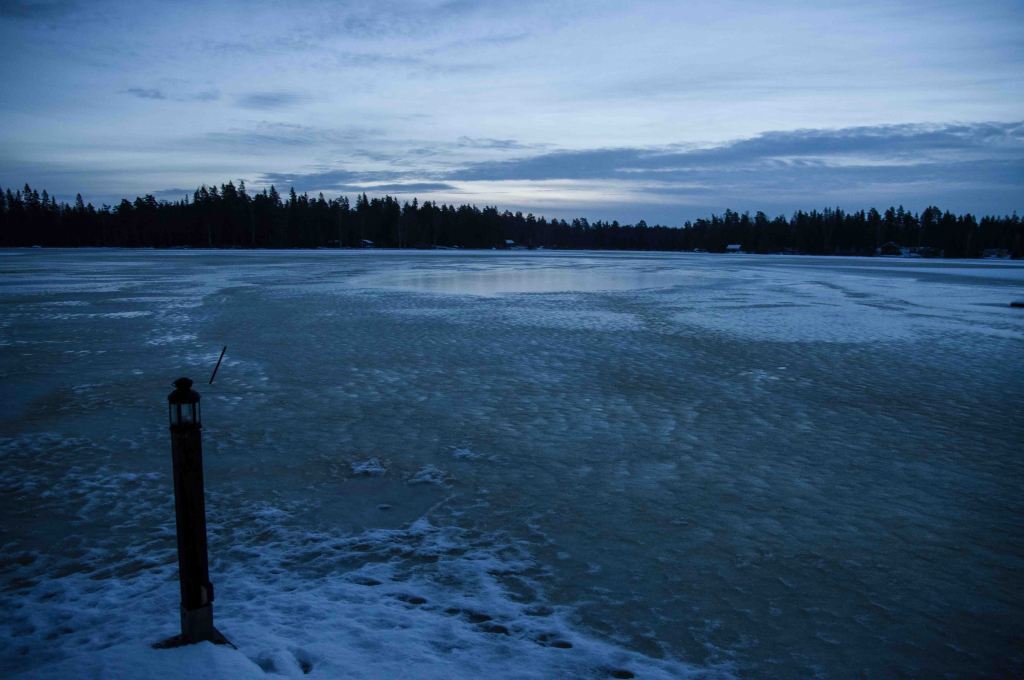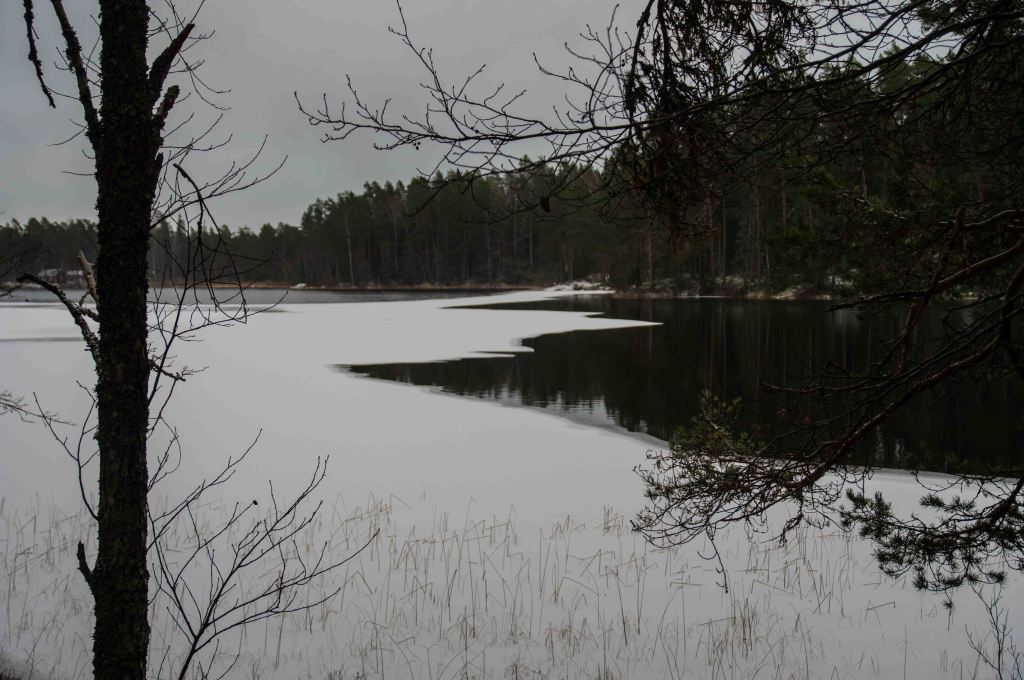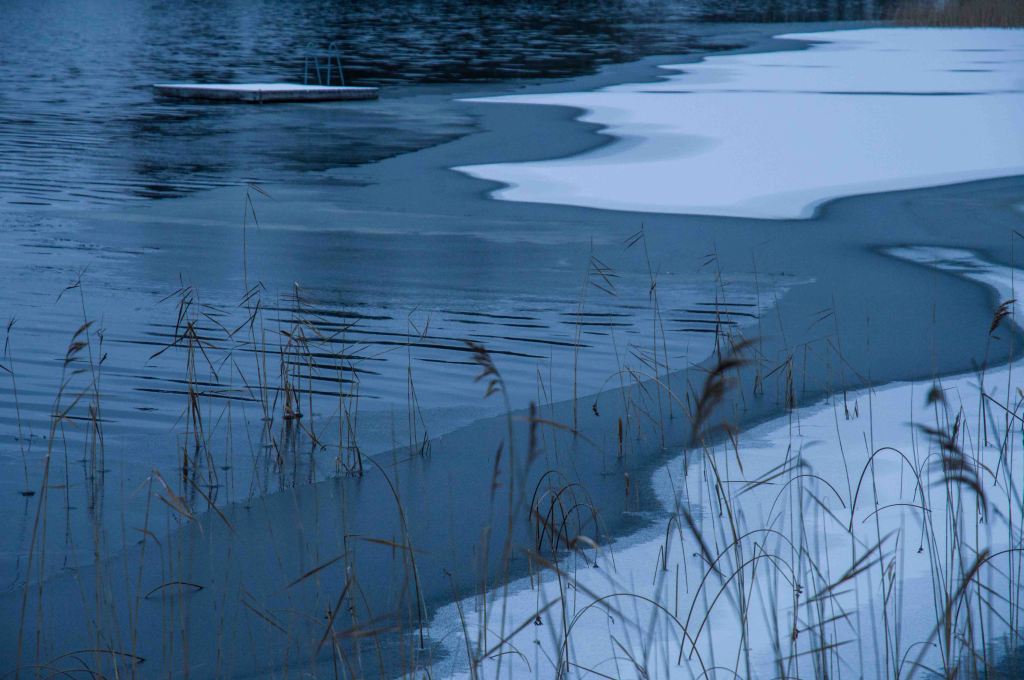 Nu blir andra fenomen synliga, vattnet bär isblommor och då isen lägger sej är någon där med pensel. Det är som att nu firas isen och bron över fjärden är redan lagd!