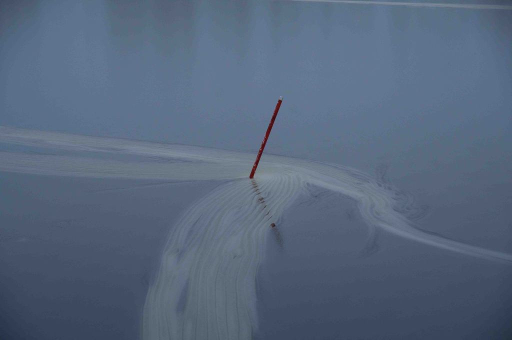 The water is empowered by the slushy snow and creates monuments and shapes. The morning walk reveales what parties and walks have occured since last time.