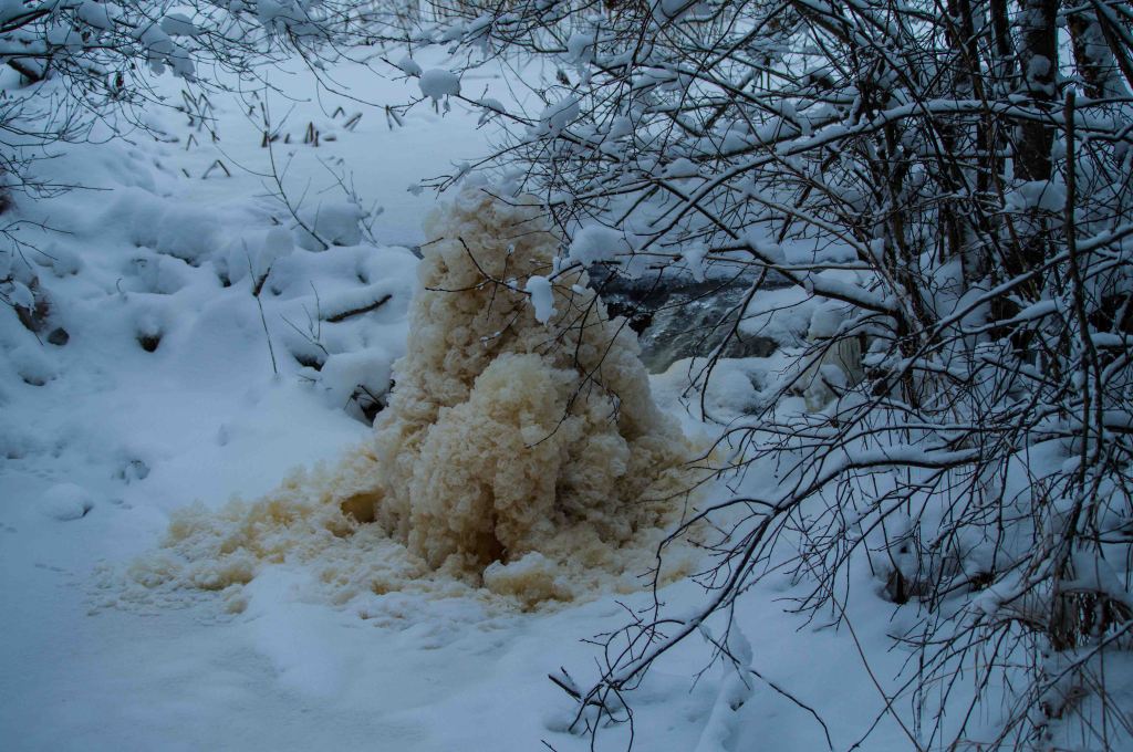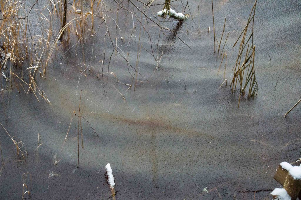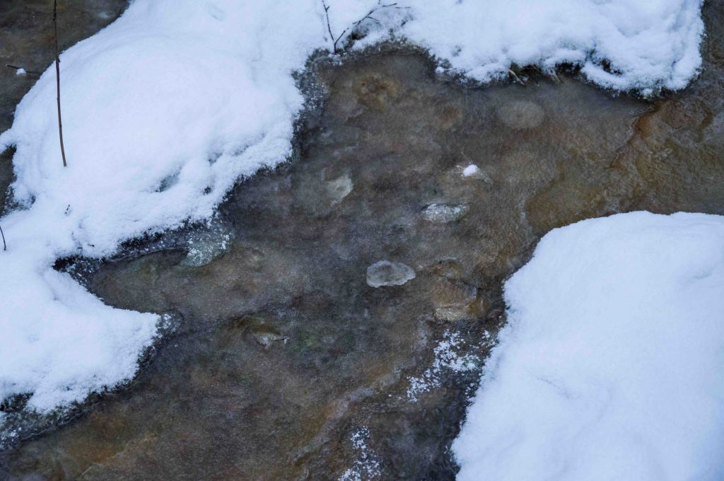 Other phenomena become visible, the water carries ice flowers and as the ice settles someone is there with a paintbrush. A bridge over the water is established.