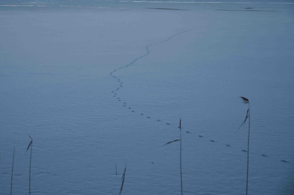 From bare ground and open water to new ice, snow and cold. Nature has resumed its winter condition. Now not only the obscure beings inhabit the landscape, the white on the ground and ice reveales a whole new world of traces. The companion and Miss Flake experience slush as well as mist.