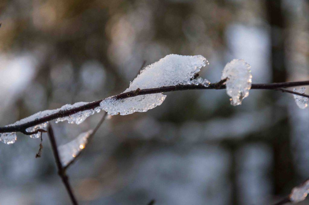 Efter snöfall blir en ny obeständig art synlig på en gren: Snöfåglar.