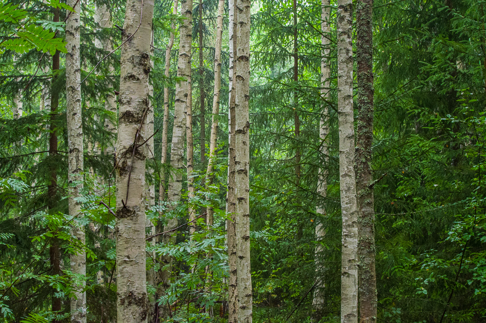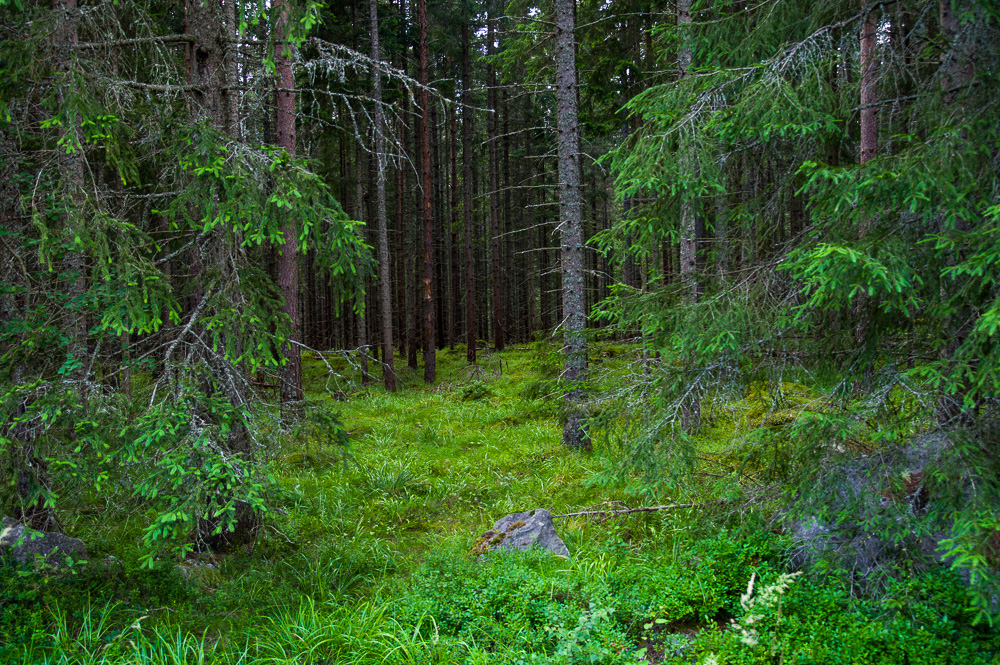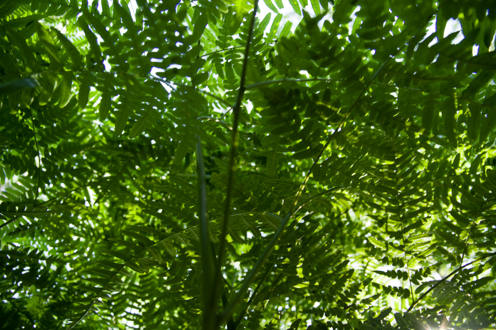 I skogen blir perspektivet kort -det är varmt med någon enstaka regndag, man kryper gärna ner under ormbunkstaket.