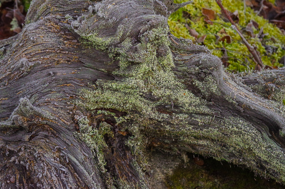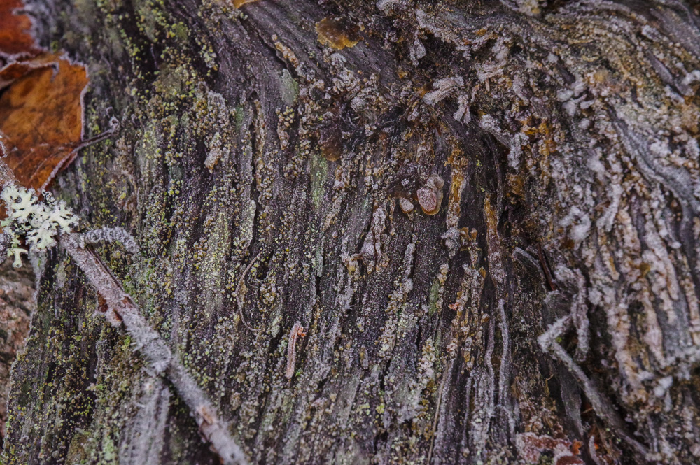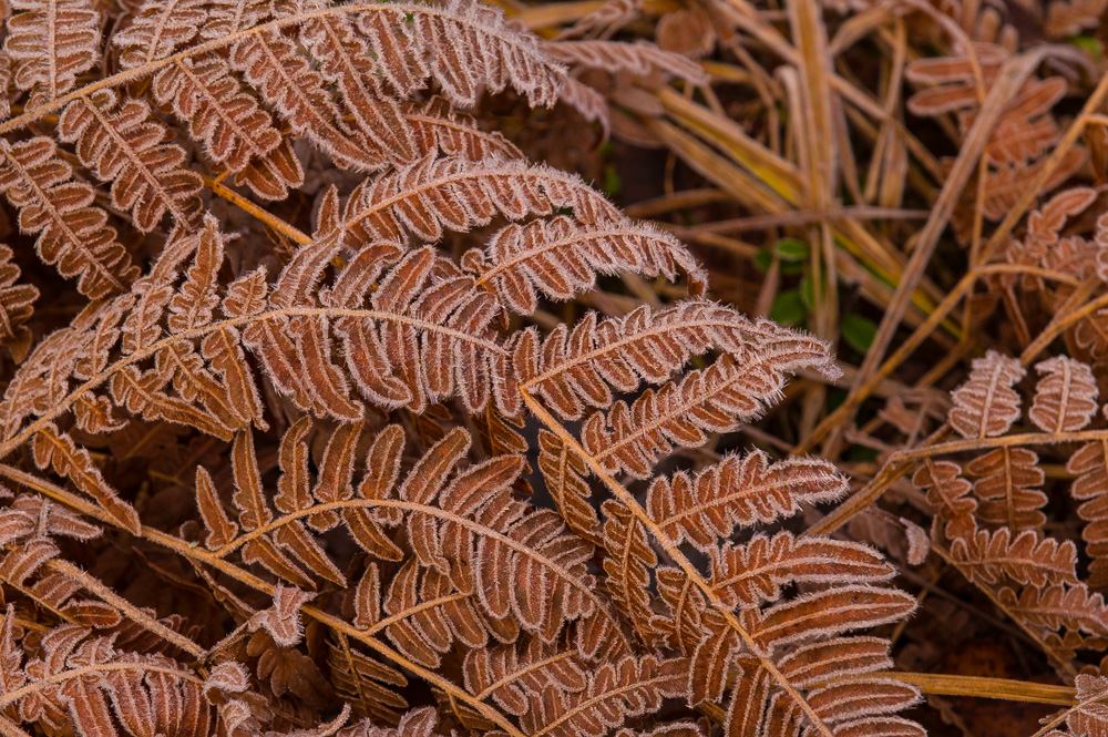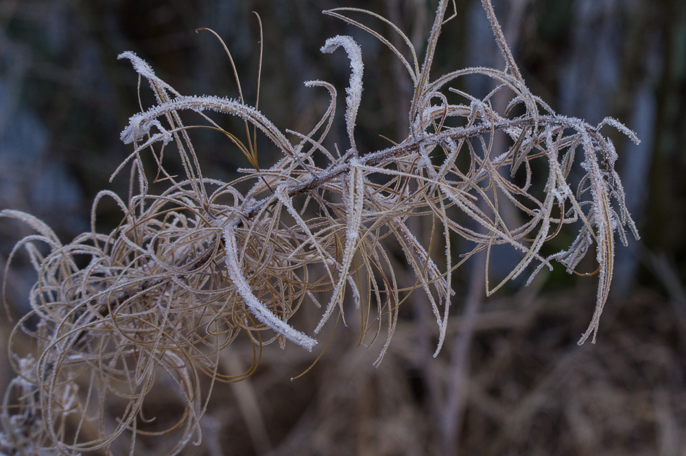 November has its own colours, as sharp as those of any other month. Surely the frost helps drawing contours and lines, but one wonders if it is new species of plants – one is perhaps a frost fern, and another one a frost cone?