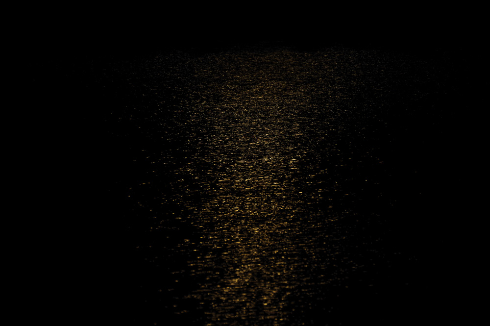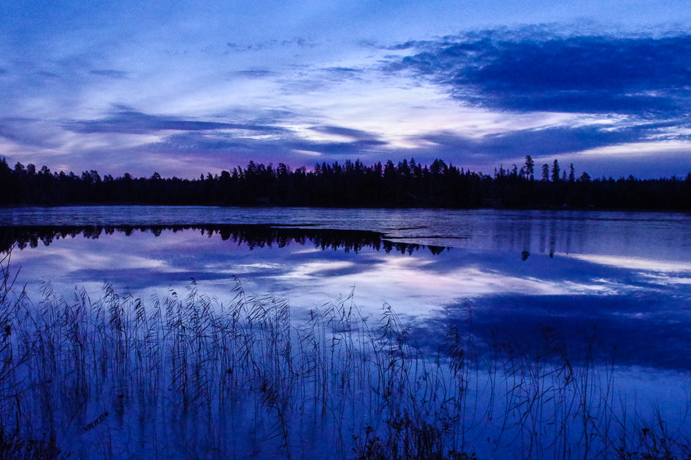 Framåt kvällen lugnar det sej och natten begynner med måne och glitter i sjön.