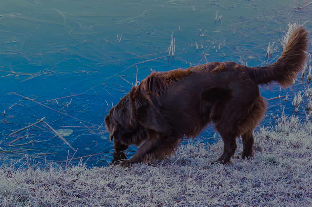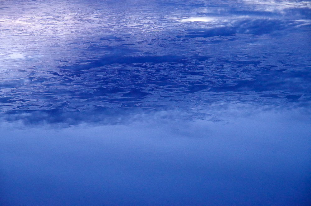 Nästa morgon är det intensiv undersökning av det hårda vattnet. Molnen speglar sej i vattnet så man blir förvirrad vad som är upp och vad som är ner. På marken bland frostiga linjer upptäcks nya former som växer fram. Frosten på ytorna skimrar i ljuset och november går mot sitt slut.
