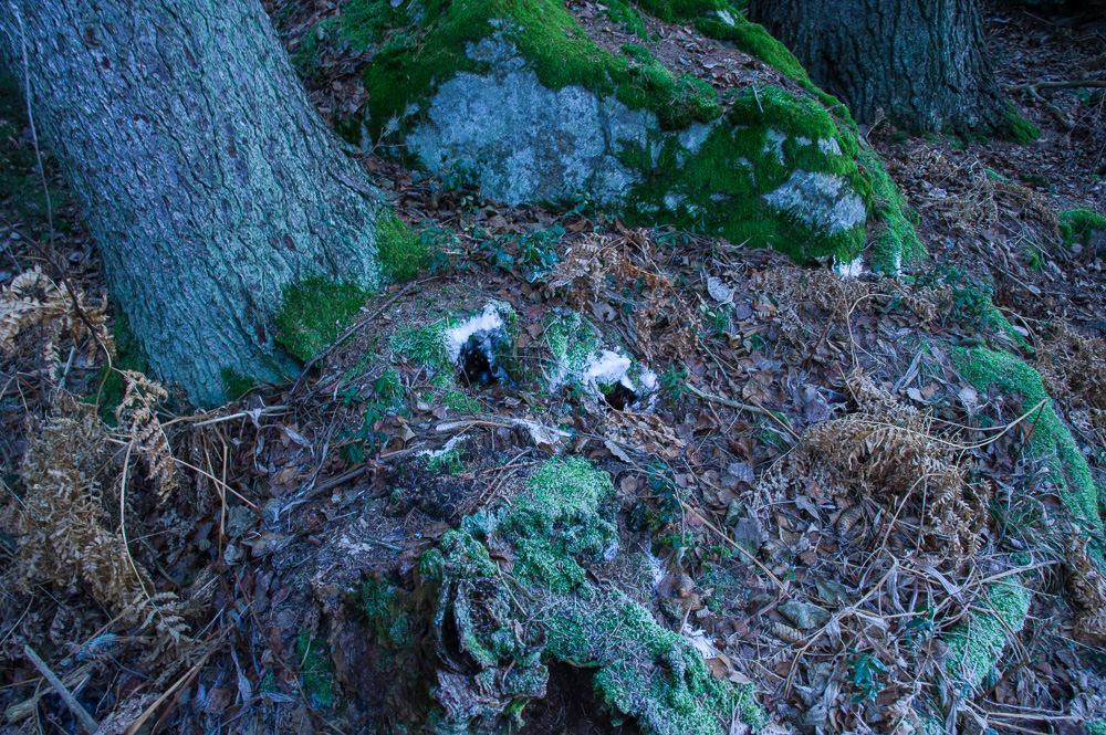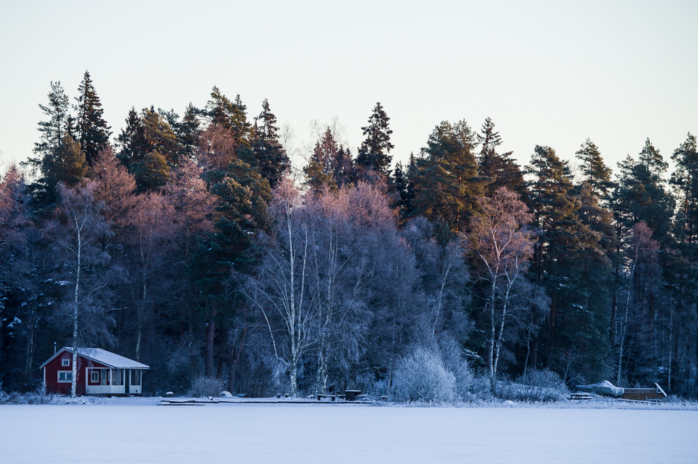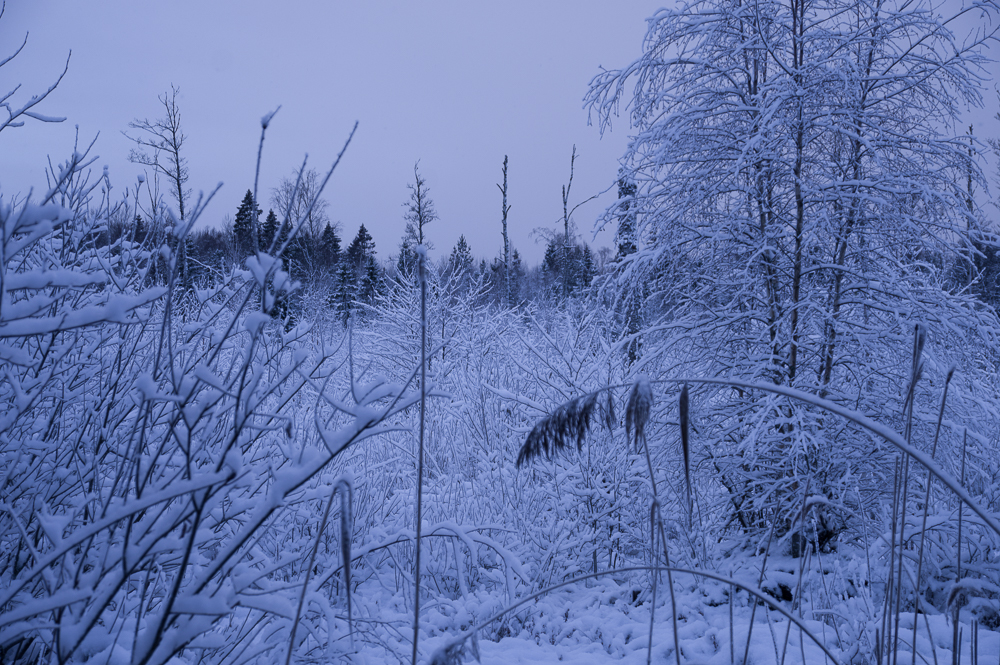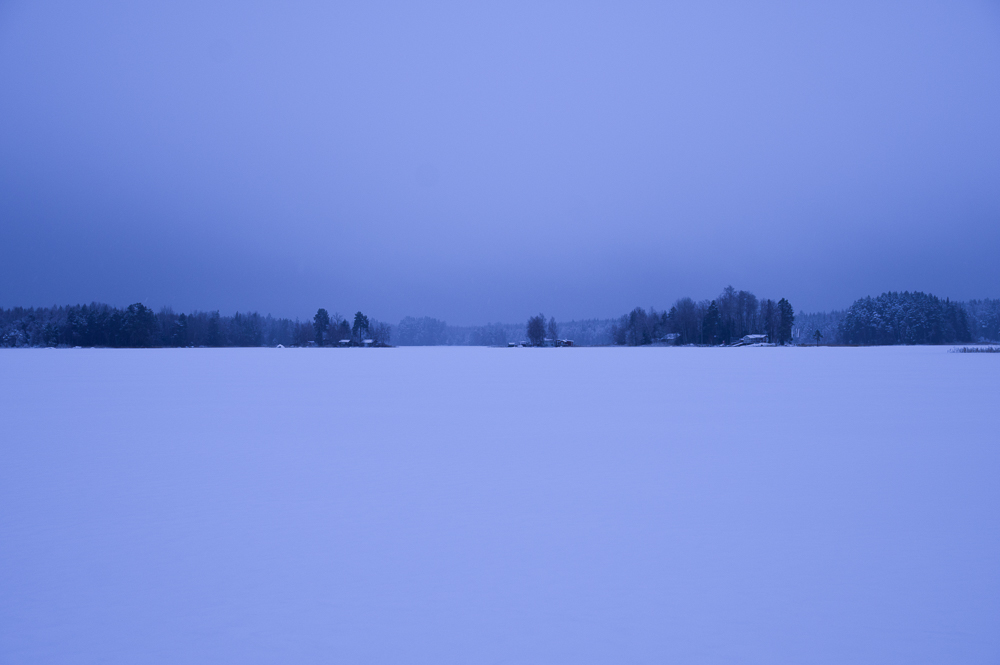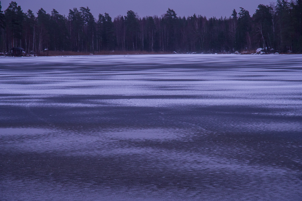 Det är att leva trots vinter. Nog verkar det finnas liv i skogen när man tittar närmare. Dom som lever, vet dom hur? Varför gick musen på den isturen och varför vände han där? Frågan kanske får sitt svar när man betraktar spåren av morgonrusningen vid strandkanten?