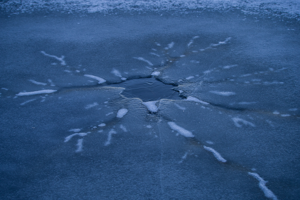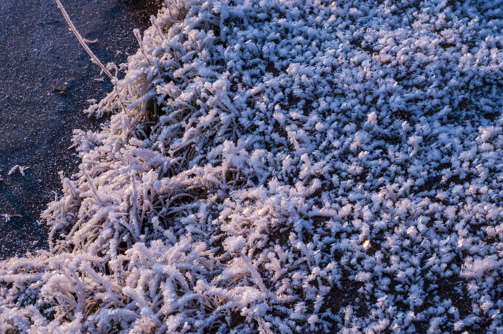 The december morning starts off cold, interrupted a few days later by warmer temperature before the cold continues. The ice has grown thick and embraces the world and life down under.