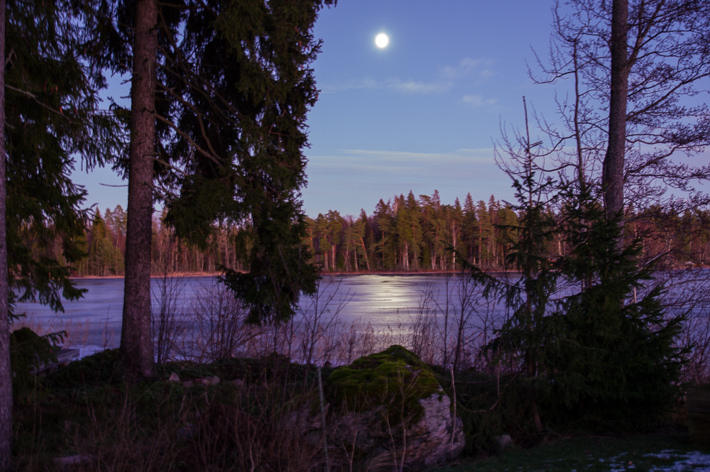 Kvällarna kommer tidigare och tidigare, det är till och med så månen får alltmer bråttom att visa upp sej och kommer tidigare och tidigare.