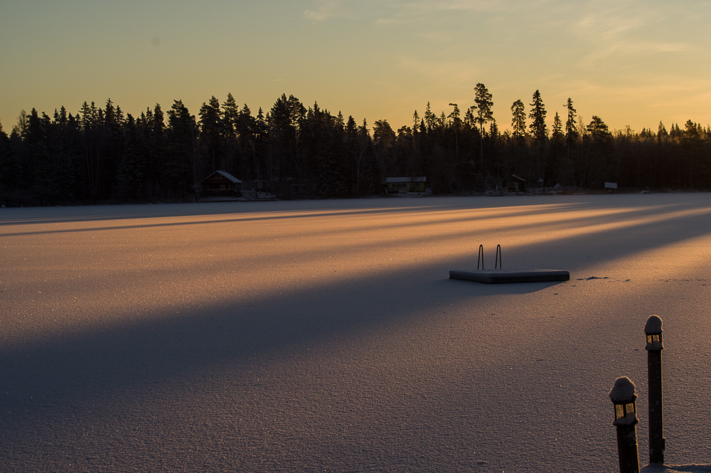 Decembermorgonen inleds kallt med avbrott några dagar senare för blida innan kylan fortsätter. Isen har vuxit sej tjock och omsluter världen och livet därnere.