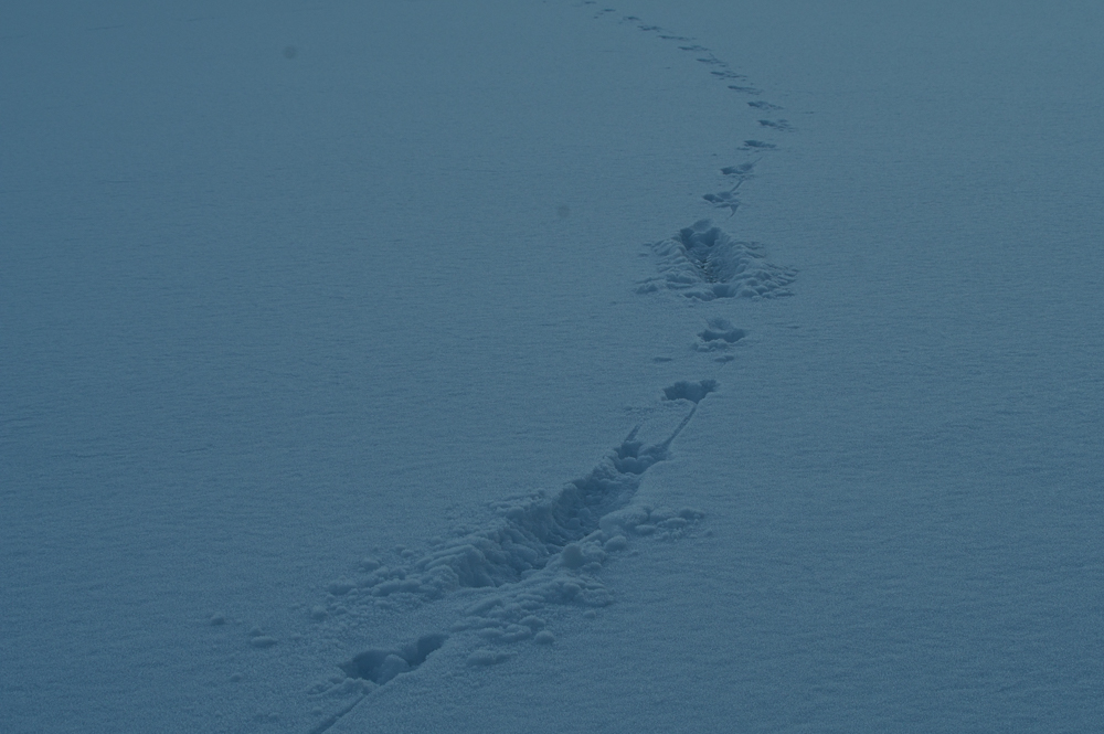 Living despite winter. Surely there is life in the forest if one takes a closer look. Those who live, do they know how? Why did the mouse go for that walk on the ice and why did he turn around? Perhaps the question is answered by the morning rush tracks on the shoreline?