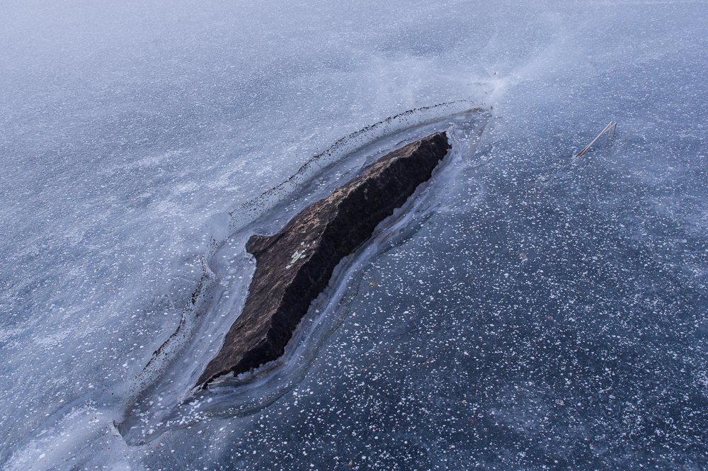 We are in the midst of winter, with northern lights as well as snowstorms. The ice is still growing, but it seems like some want to leave the frozen state to reach for the february sun, are rocks re-born every year? Light increases by each day, much appreciated by the rosefinches whose time of birth is now – in the middle of winter when the spruces bear seeds.