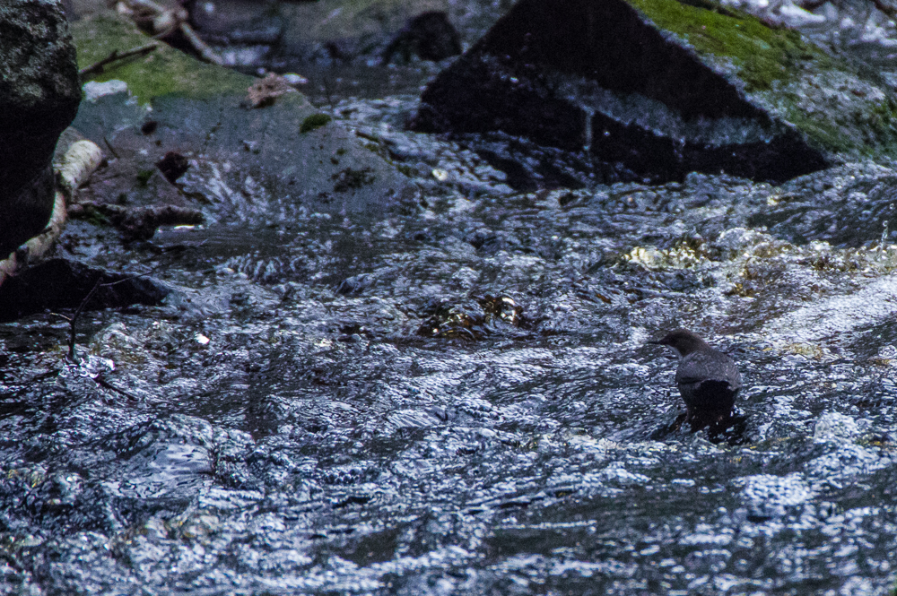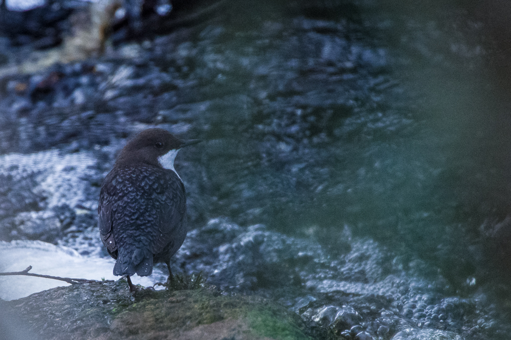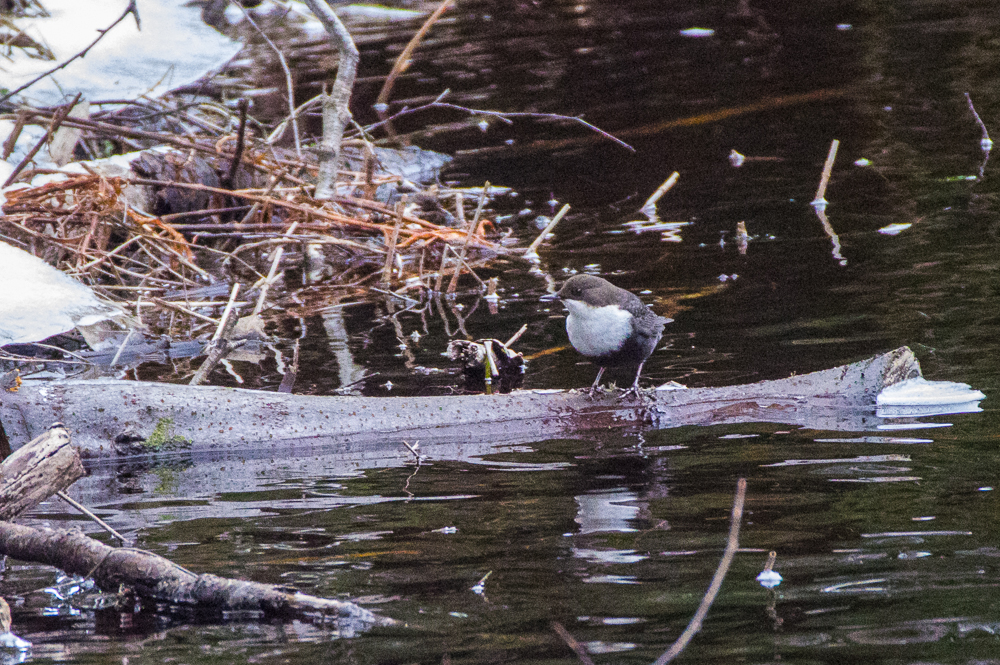 En dag då grenarna pekar åt samma håll gör vi åter ett besök hos den lille vinterbadaren, ständigt på spej och redo att dyka i det brusande vintervattnet. På kvällen glöder solnedgången. Man frågar sej om högvintern är över nu? Är det där det tassande spåret ämnar sej -ur vintergreppet?