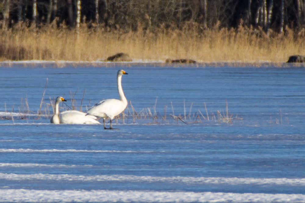 The days are sunny, and the sky mostly blue. Signs of continuation are starting to show: the messengers of spring arrive in great excitement and the old couple yet again takes post by the lake. The coal tit in the treetop practises singing before realizing it has been discovered, and leaves.
