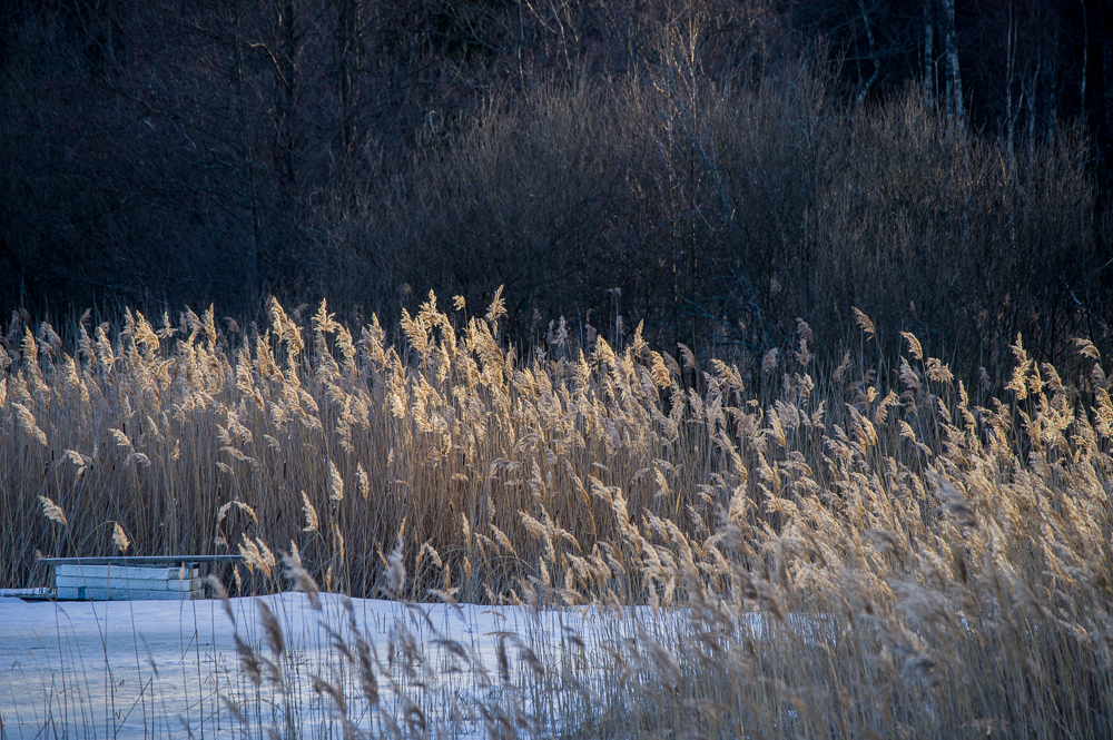 Det är bruna nyanser i vassen som glittrar i solskenet: Följeslagaren tittar fram!