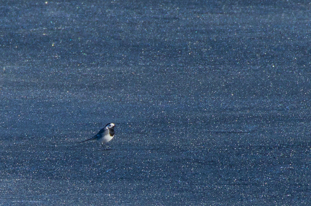 A few warm days tempts the white wagtail as well as the seagull to try out the rotten ice. The
