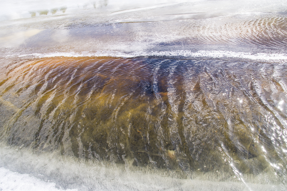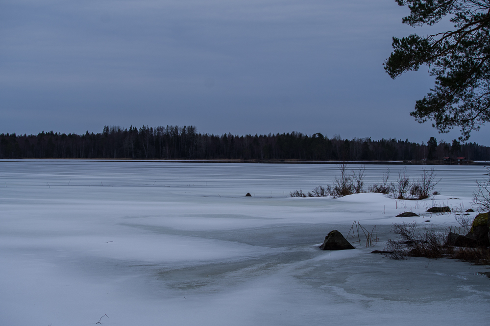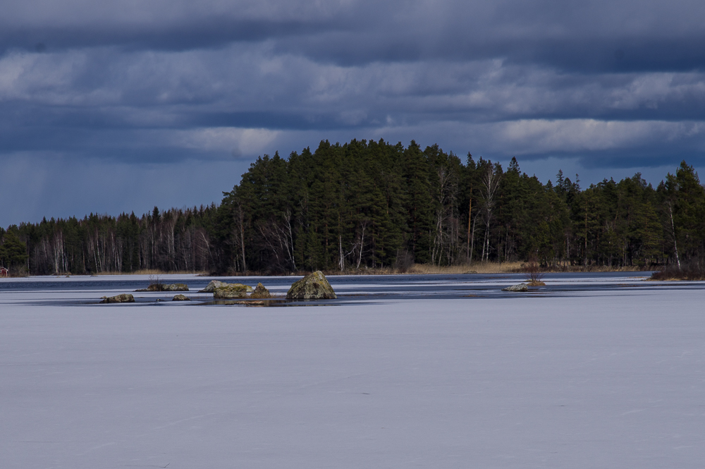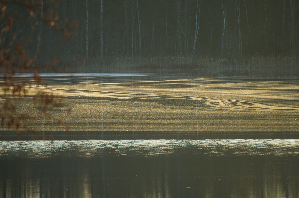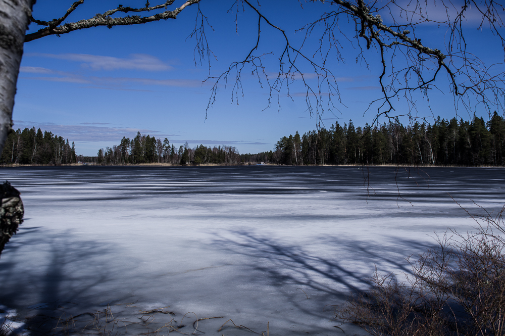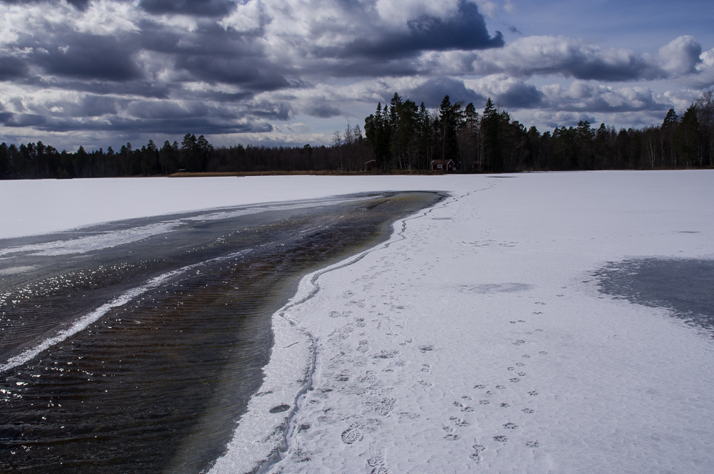 Så kommer nordanvinden och öppnar de stora fjärdarna, resterna av is i vikar försvinner. När vinden mojnat syns vattenytan med årets första pollen.