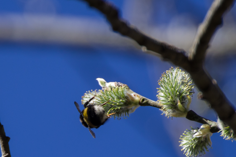 snowdrops don’t seem to care and in the blossoming willow tree the annual bumblebee